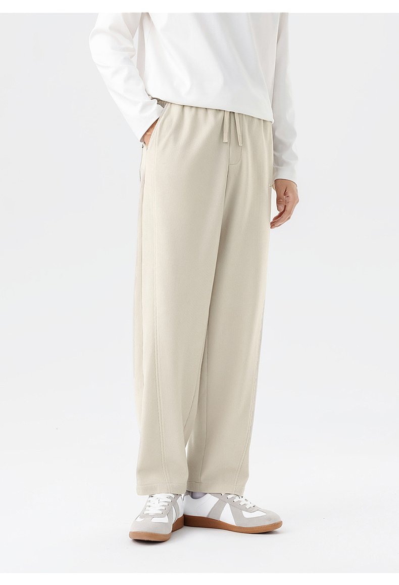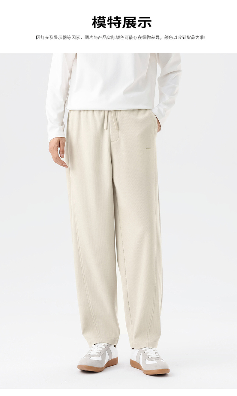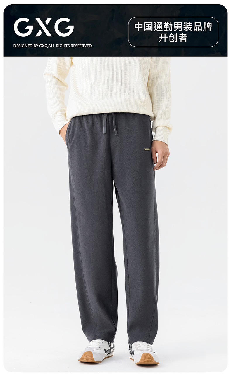 GXG男装26春季时尚松紧腰系绳日常通勤简约百搭男式直筒休闲长裤K&C