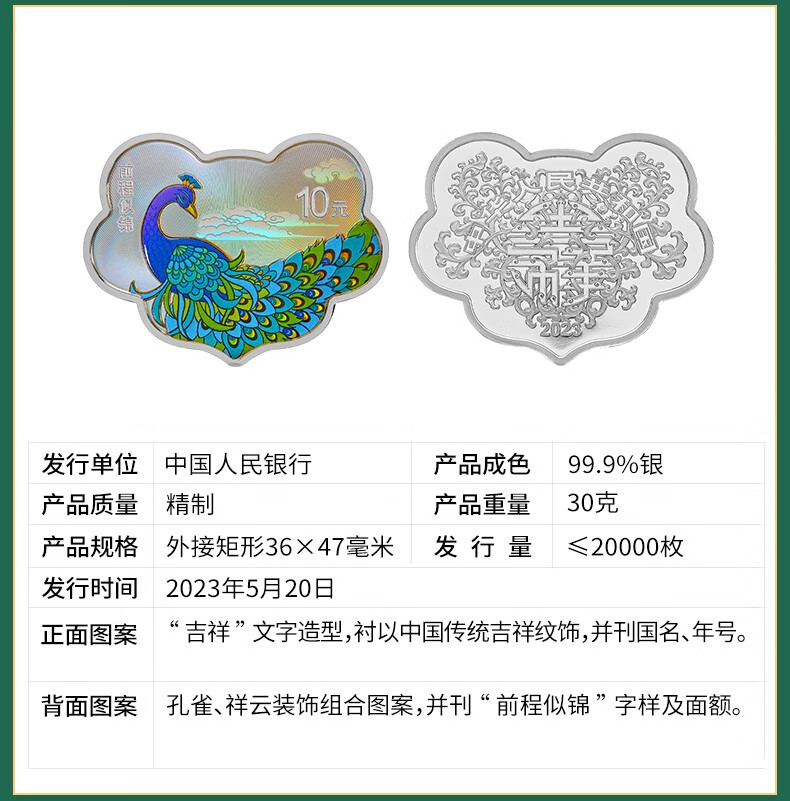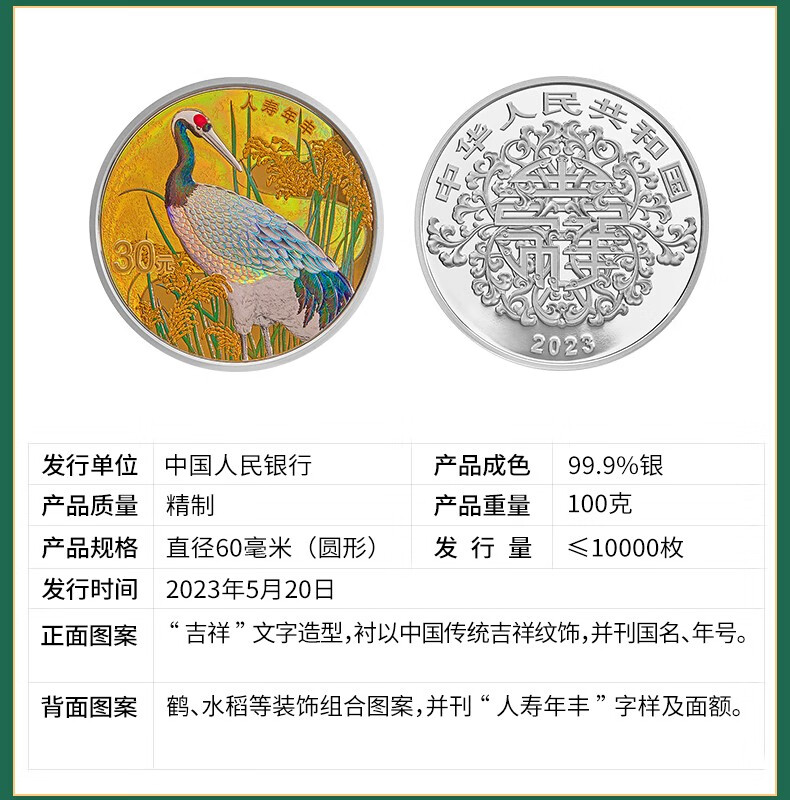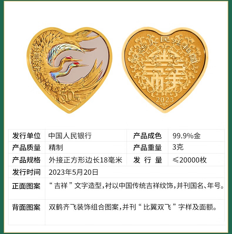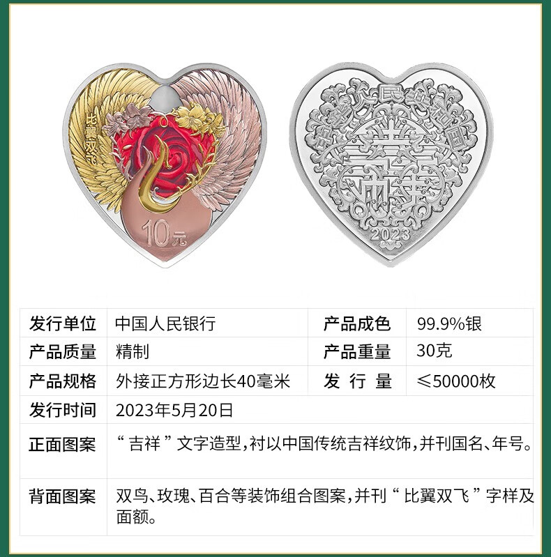 2023年吉祥文化金银纪念币(比翼双飞3克金+30克银)