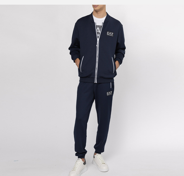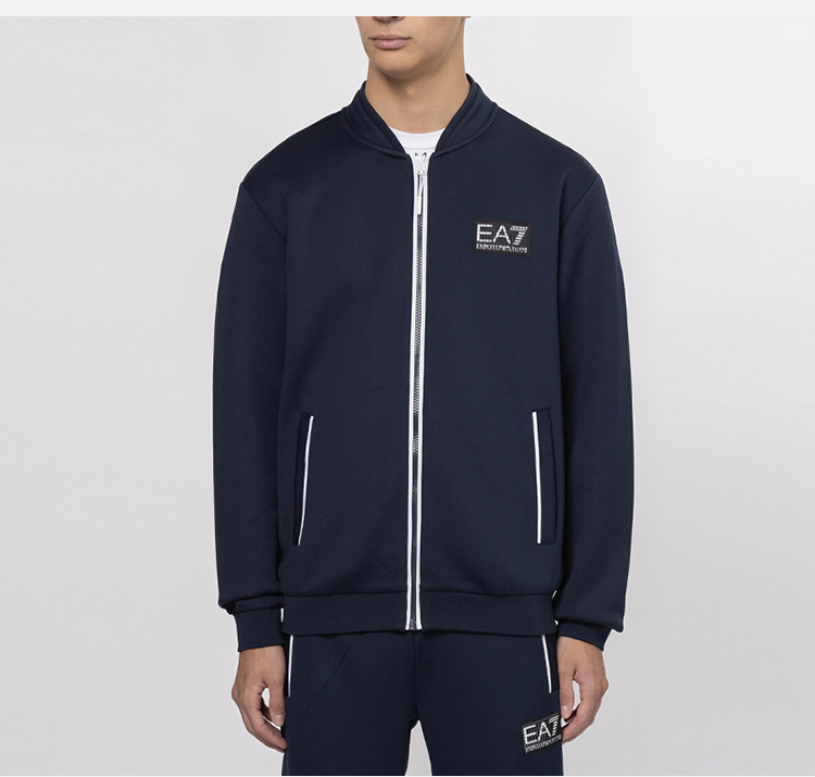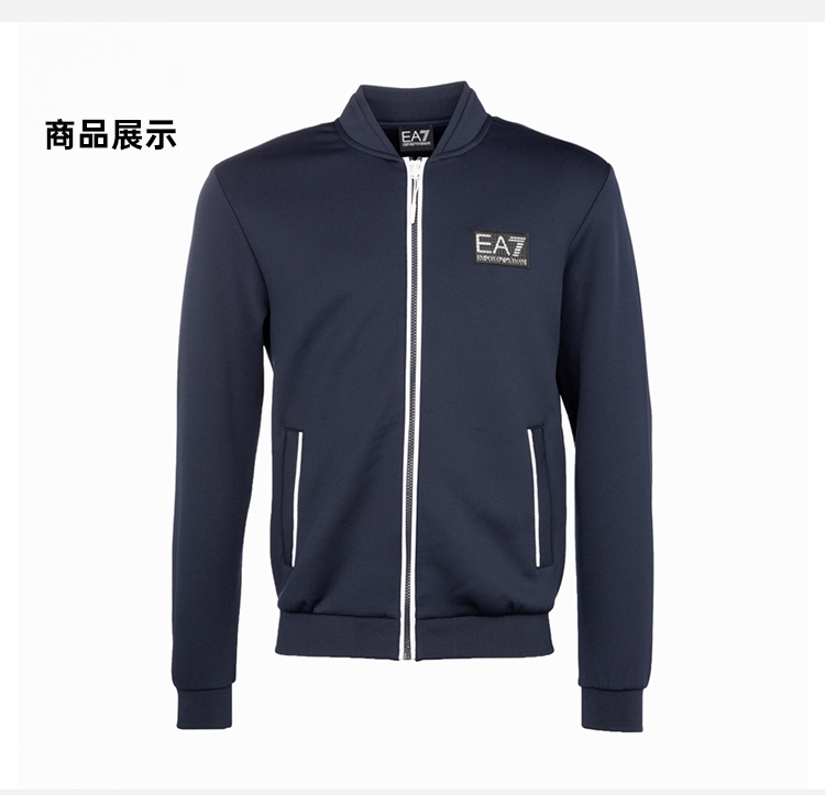EMPORIO ARMANI EA7 阿玛尼 男士字母徽标贴花拉链卫衣外套 深蓝色 6LPM22 PJAHZ 1554