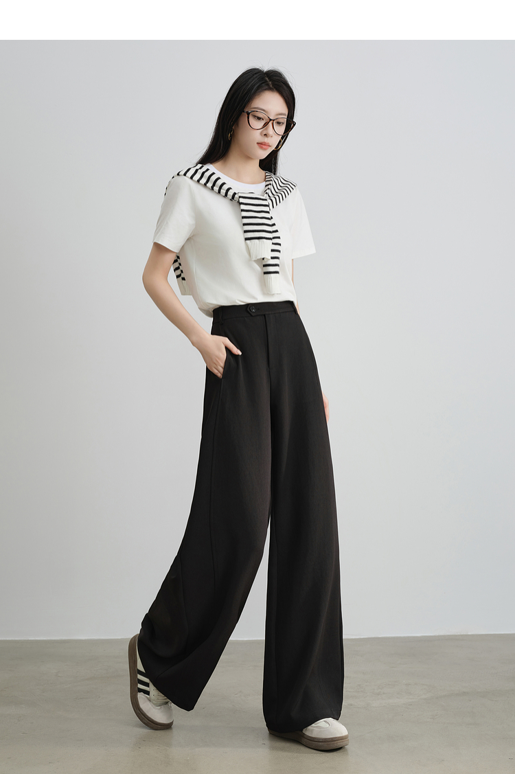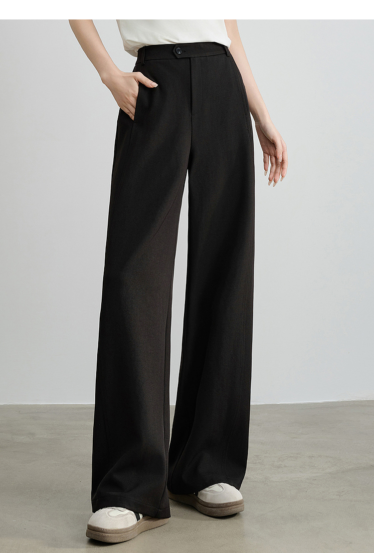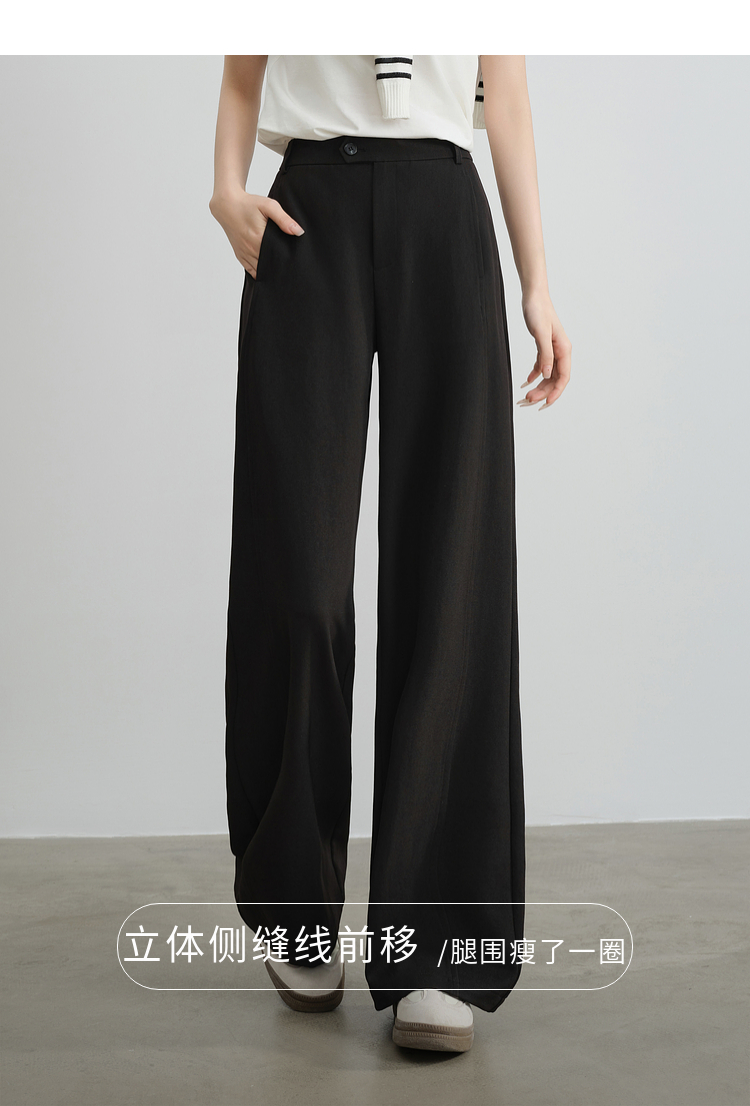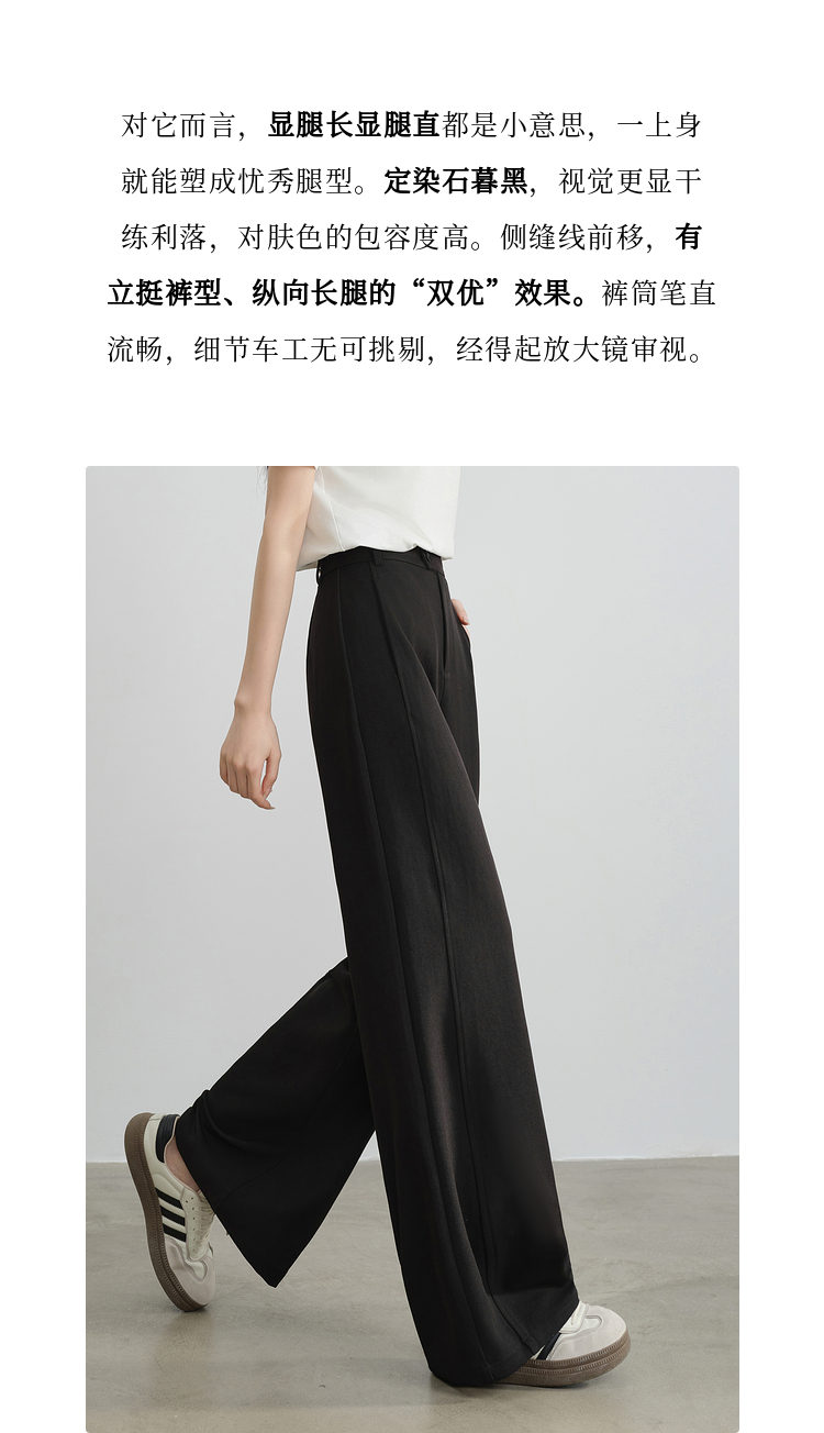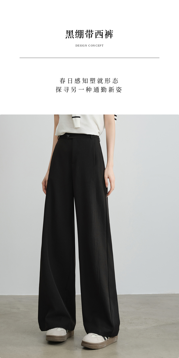 【专属特价】熙世界黑色窄版阔腿裤女春夏通勤百搭垂感宽松直筒长裤休闲西装裤