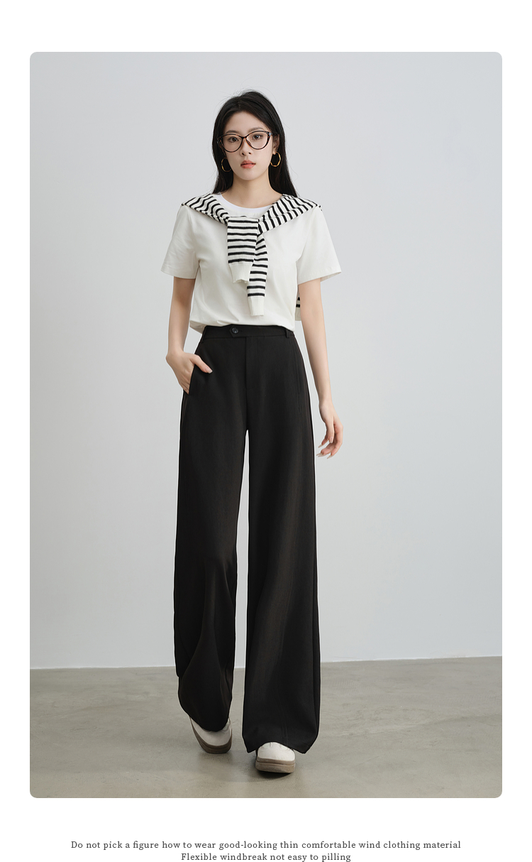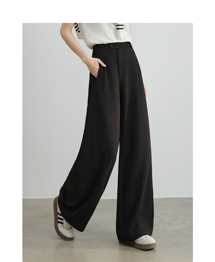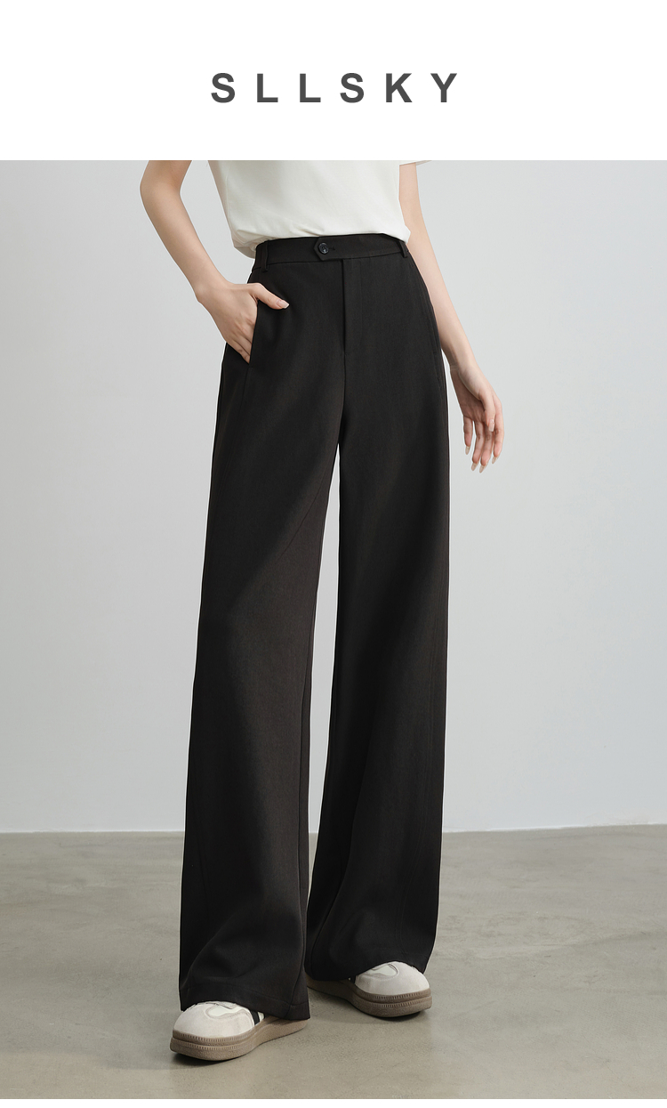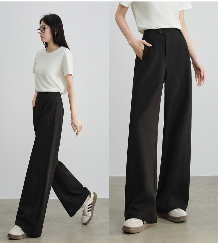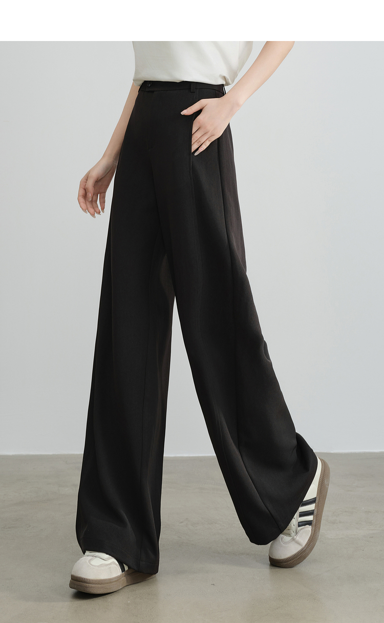 【专属特价】熙世界黑色窄版阔腿裤女春夏通勤百搭垂感宽松直筒长裤休闲西装裤