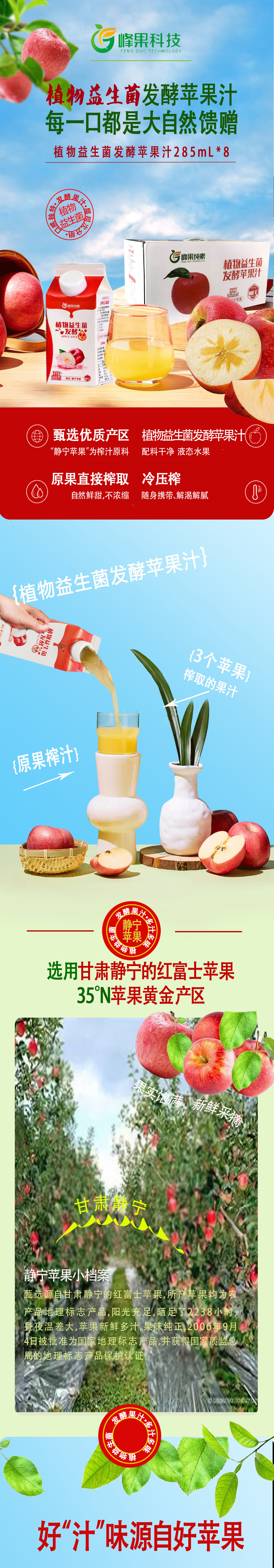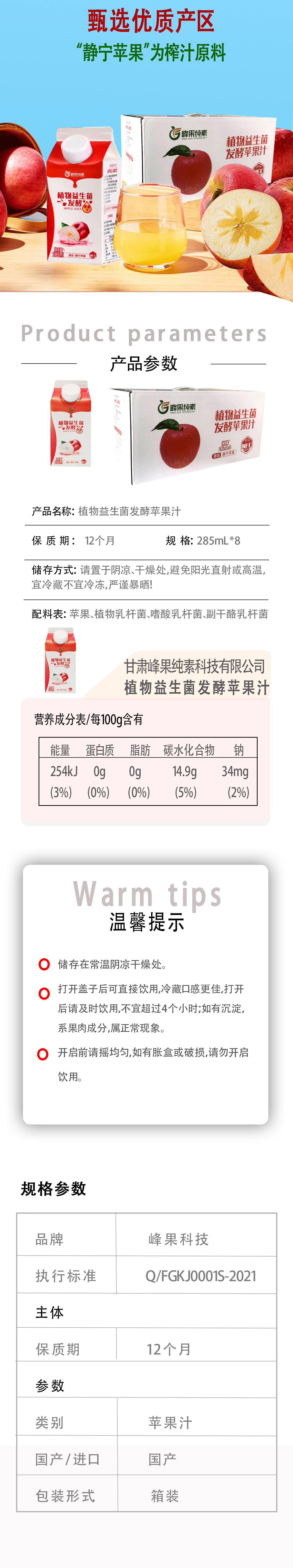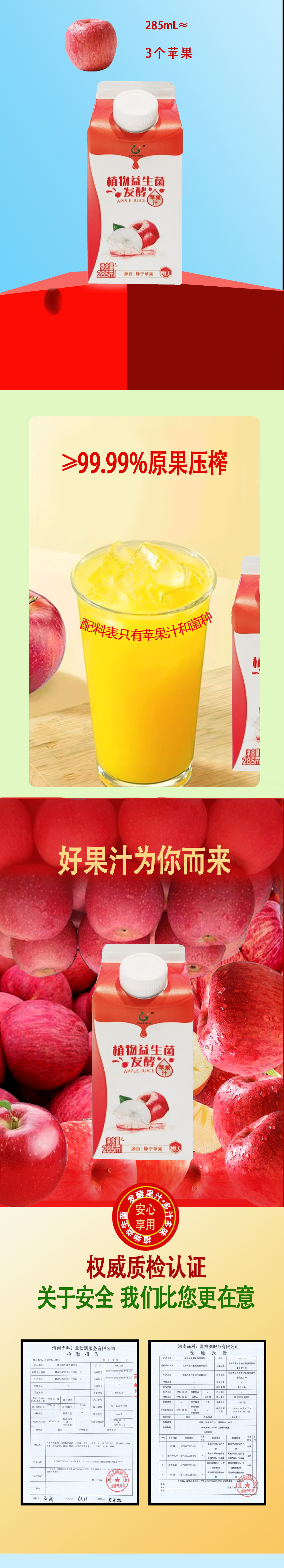 植物益生菌发酵苹果汁 建议常温储存冷藏更佳