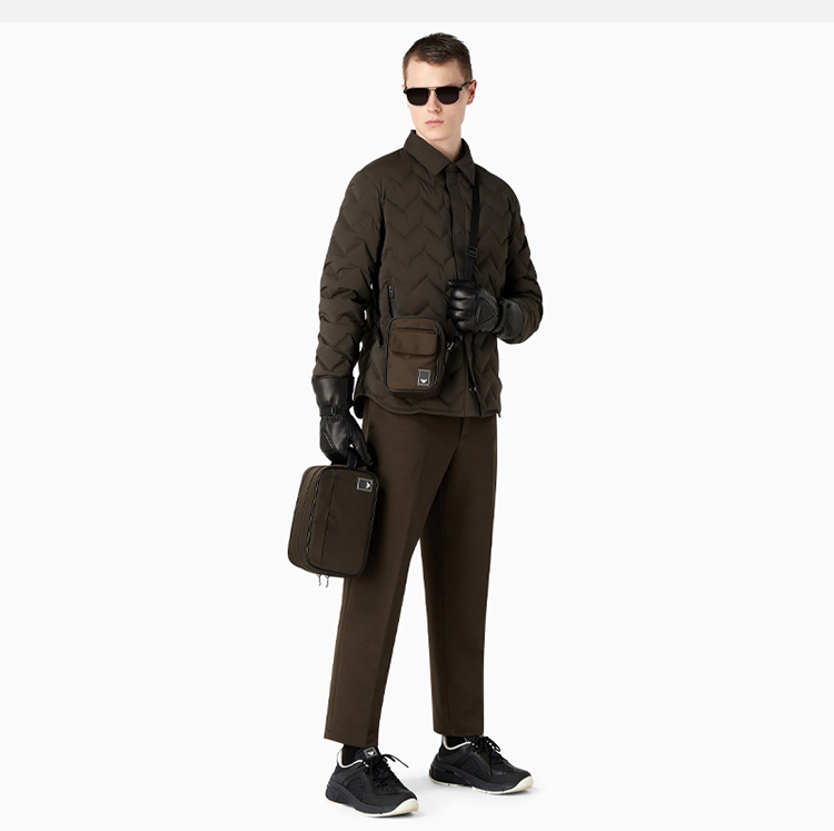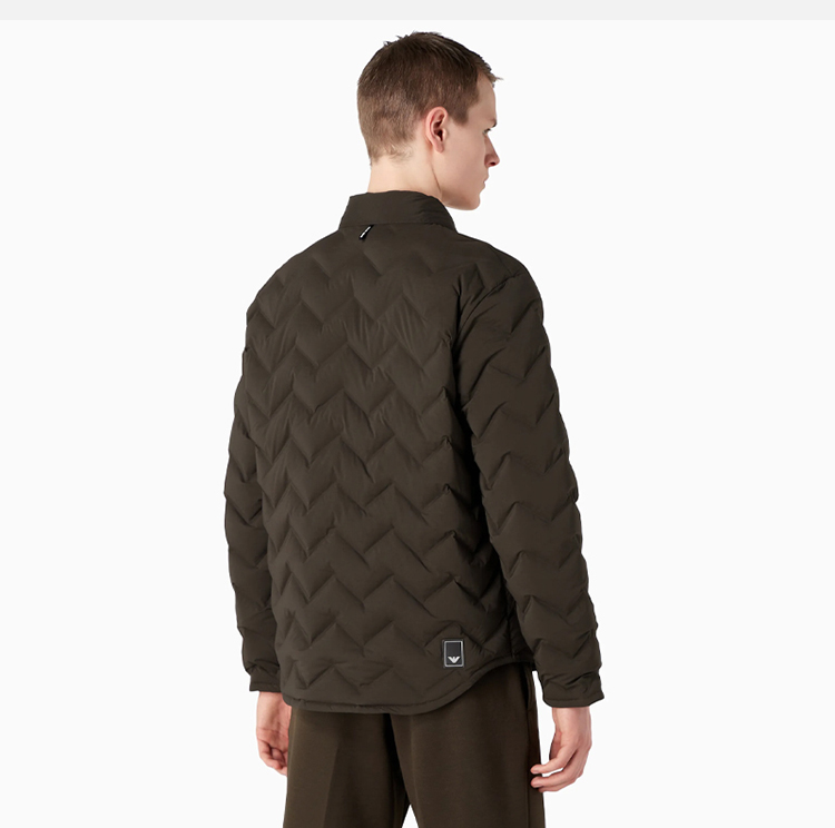 EMPORIO ARMANI 阿玛尼 男士经典领人字纹绗缝尼龙可折叠羽绒服 绿色 6R1B85 1NFGZ 0583