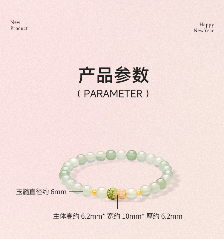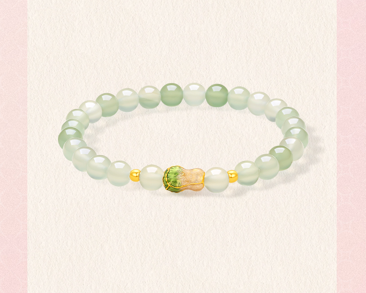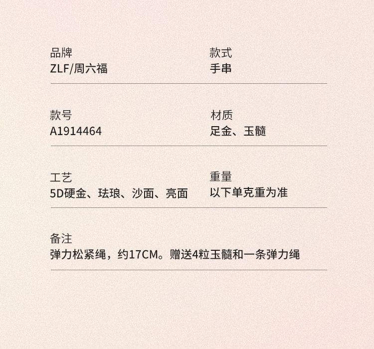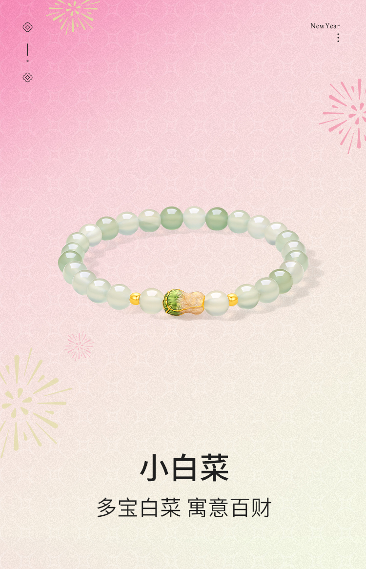 周六福黄金手串女款小白菜百财聚来5d硬金定价招财好事发生手串