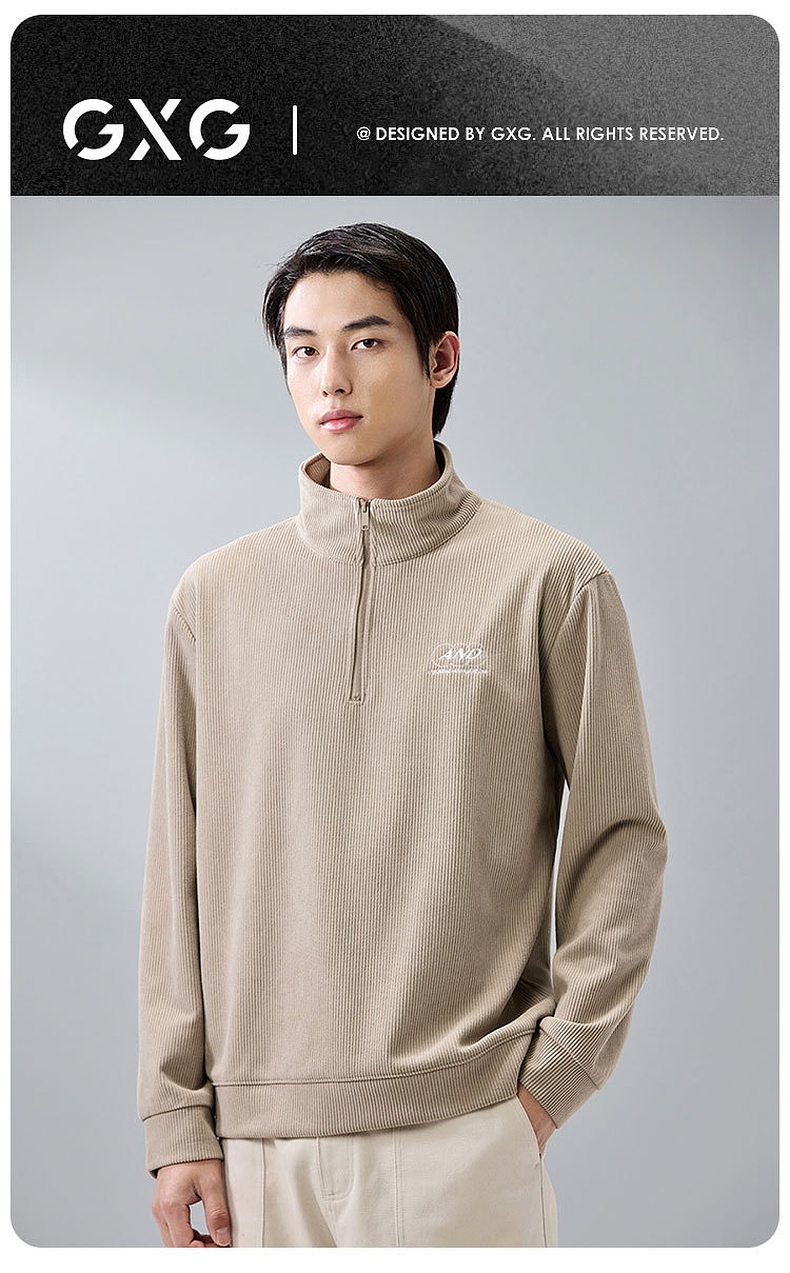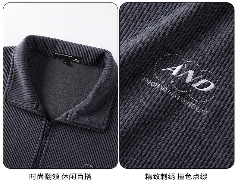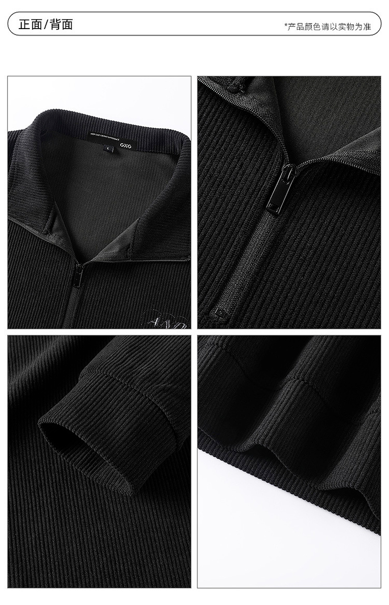 GXG男装25春季简约翻领拉链上衣男式休闲宽松百搭舒适polo领卫衣K&C