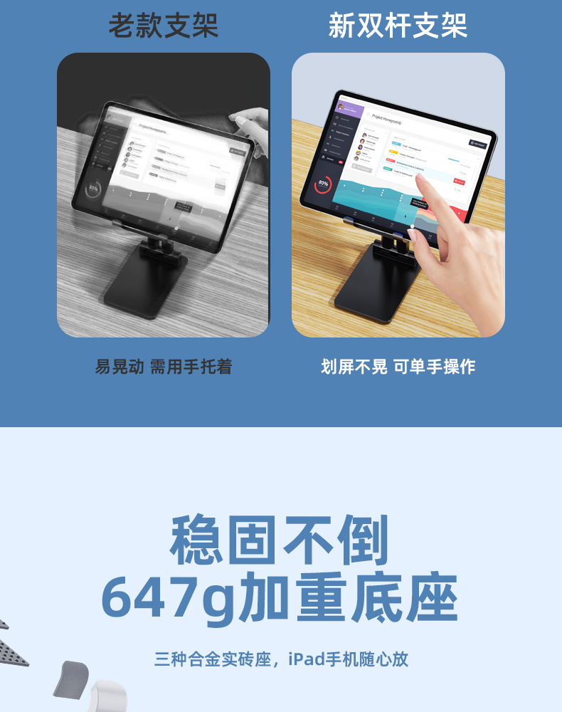 「7.9元包邮!数款可选」手机支架平板双杆网红直播桌面高档折叠可升降便携多功能追剧数码配件 商品图3