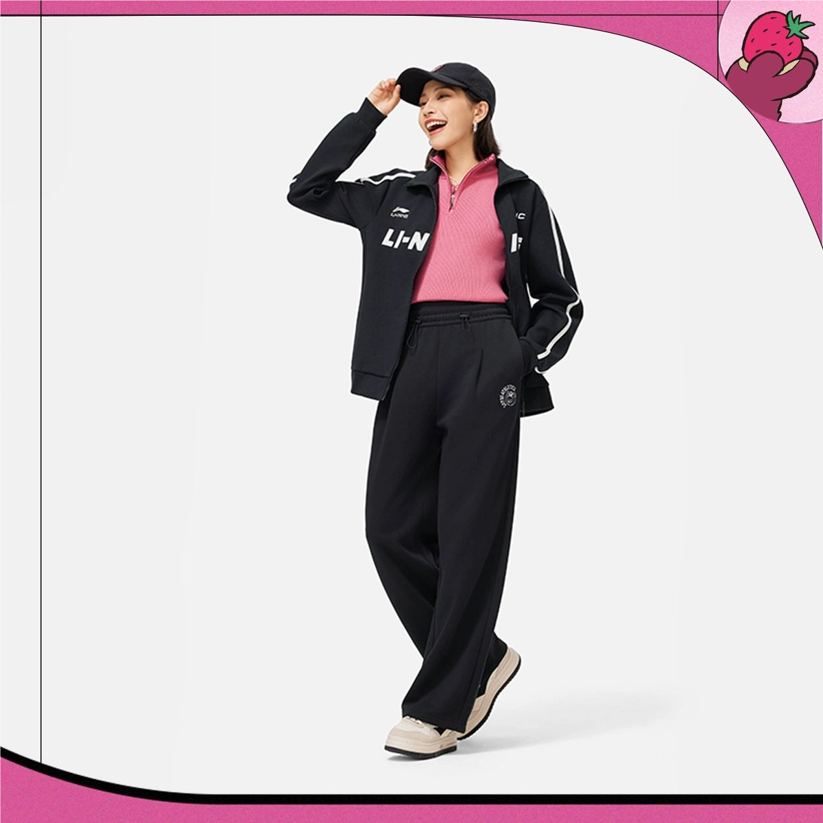 李宁女子2024秋季直筒宽松运动裤AKLU310-3
