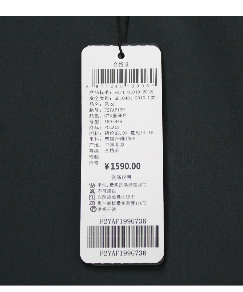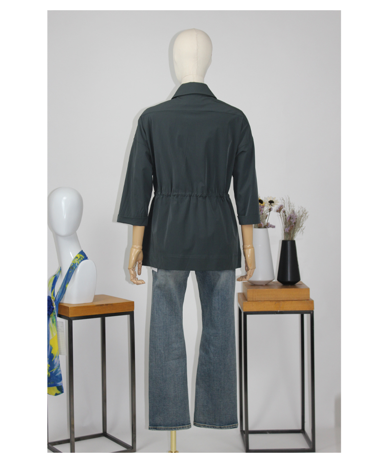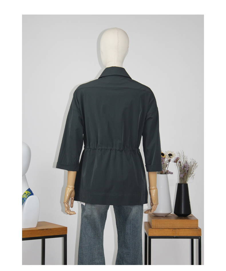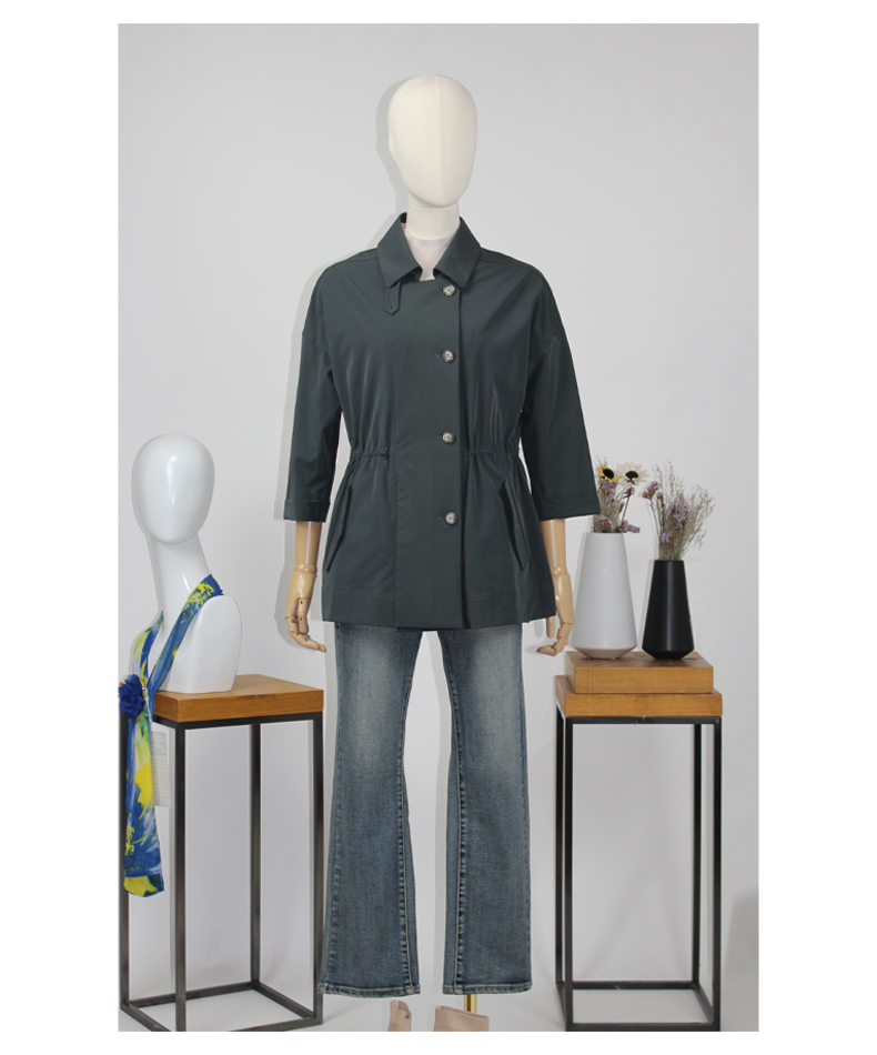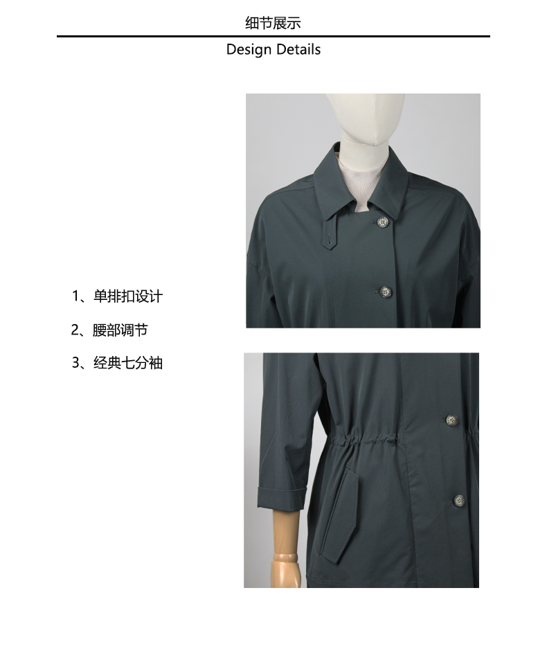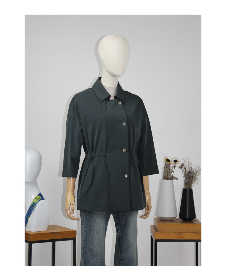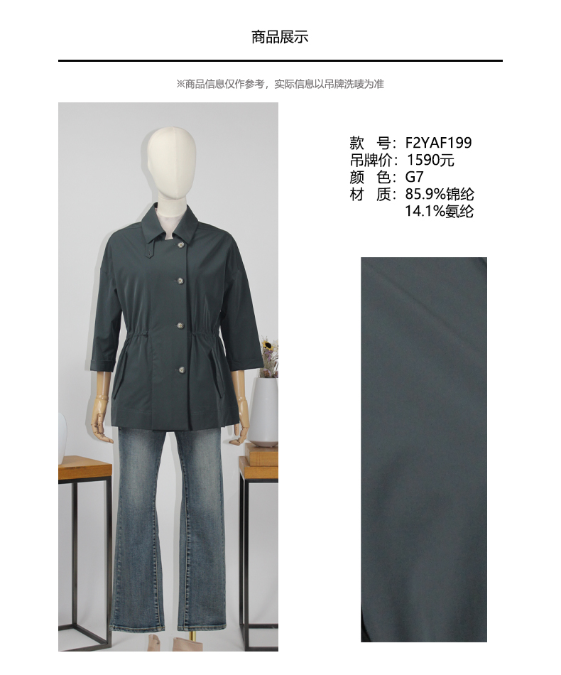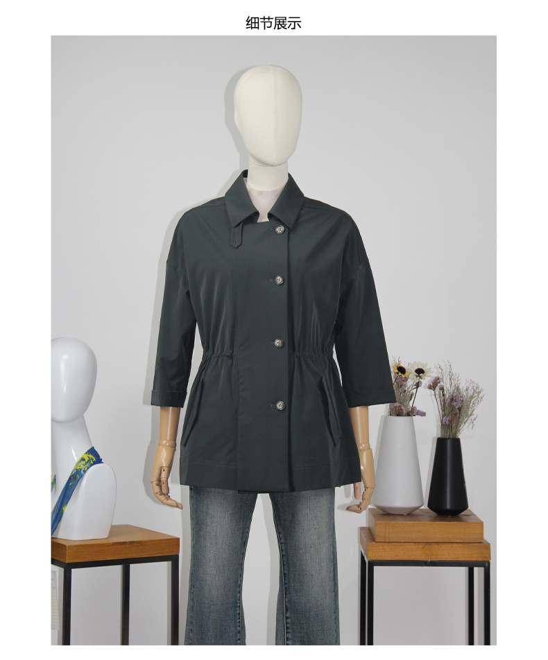 FOCALS福柯斯新款休闲收腰七分袖短款纯色外套风衣F2YAF199G7