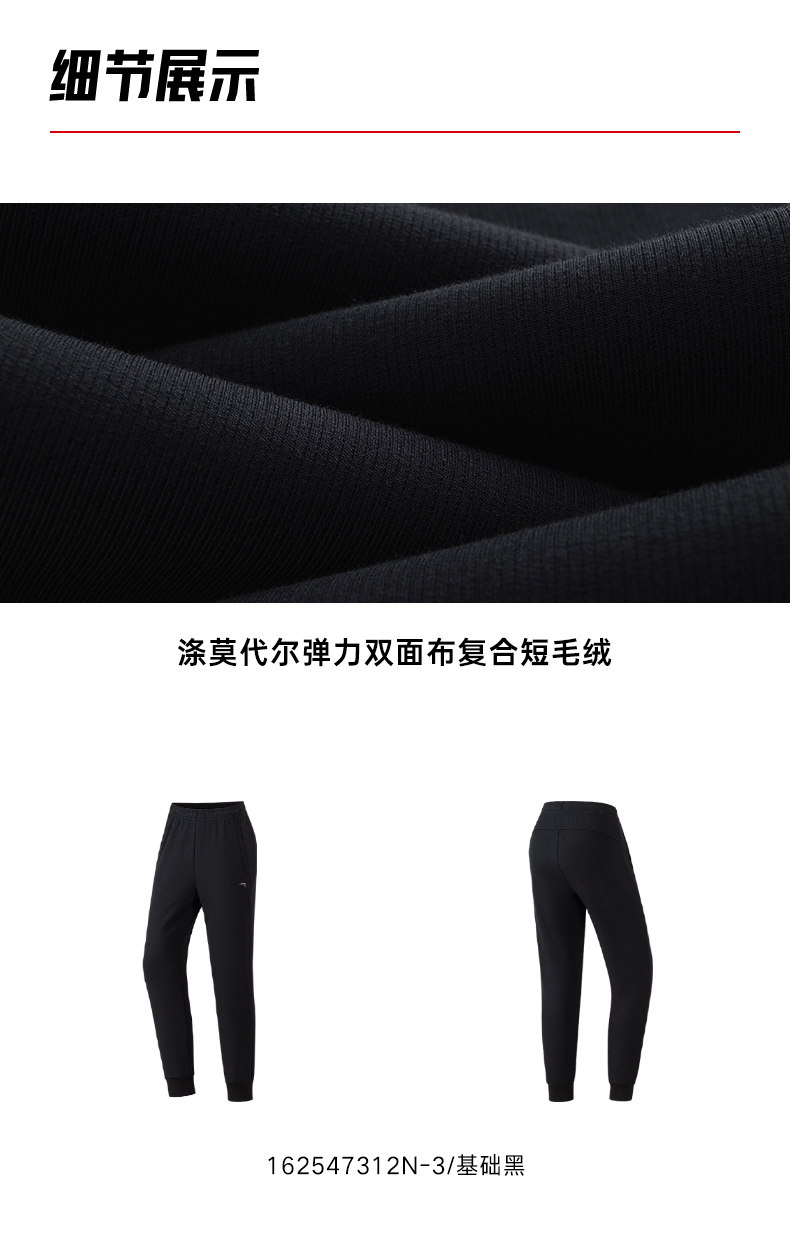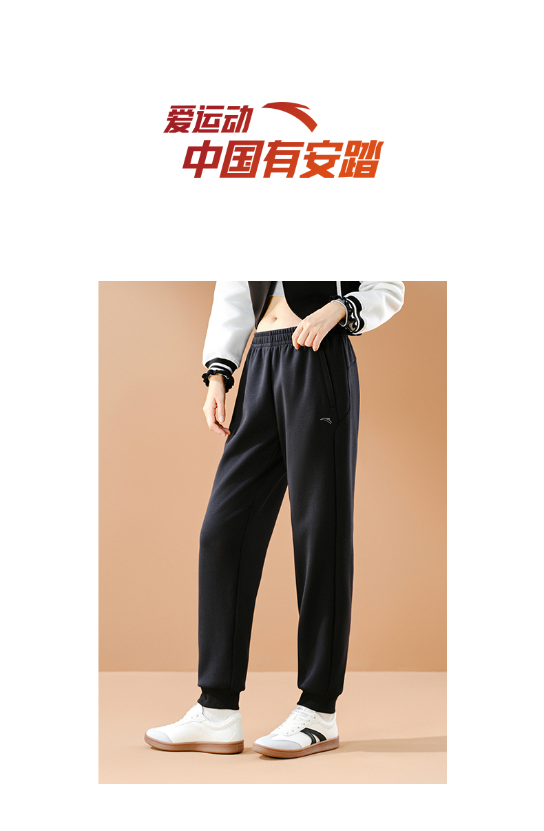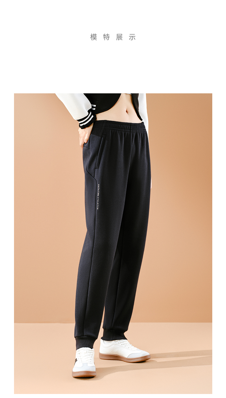 安踏女士加绒保暖针织束脚跑步卫裤162547312N