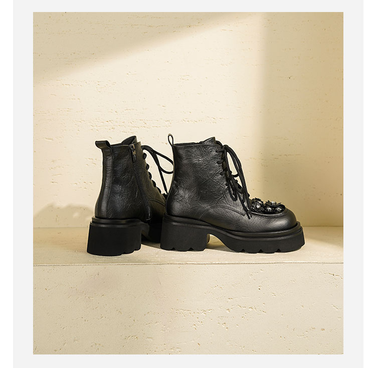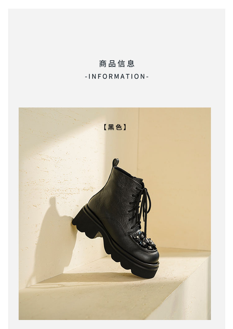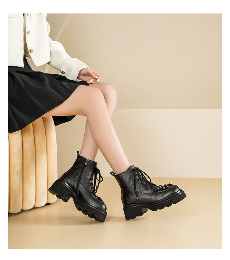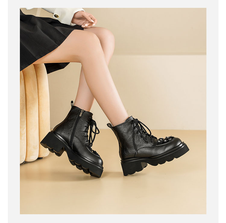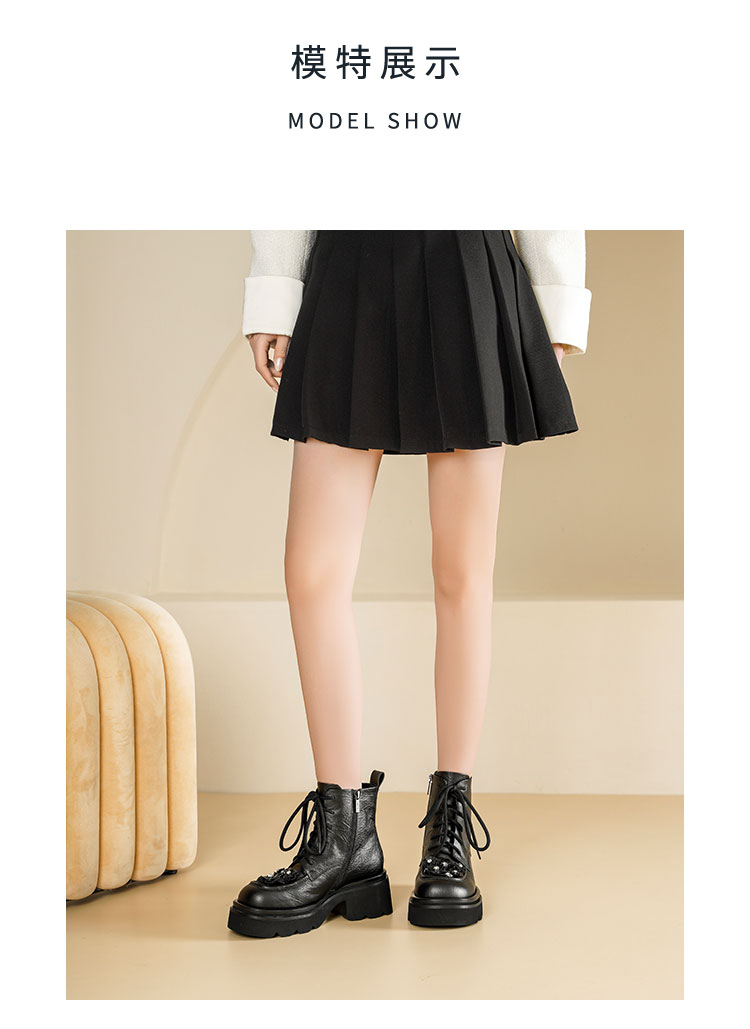 Westory2025年冬季方头厚底系带装饰侧拉链马丁靴休闲减龄甜酷短靴W25DS85211