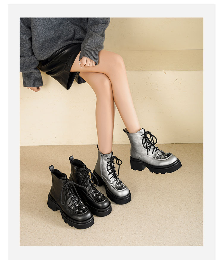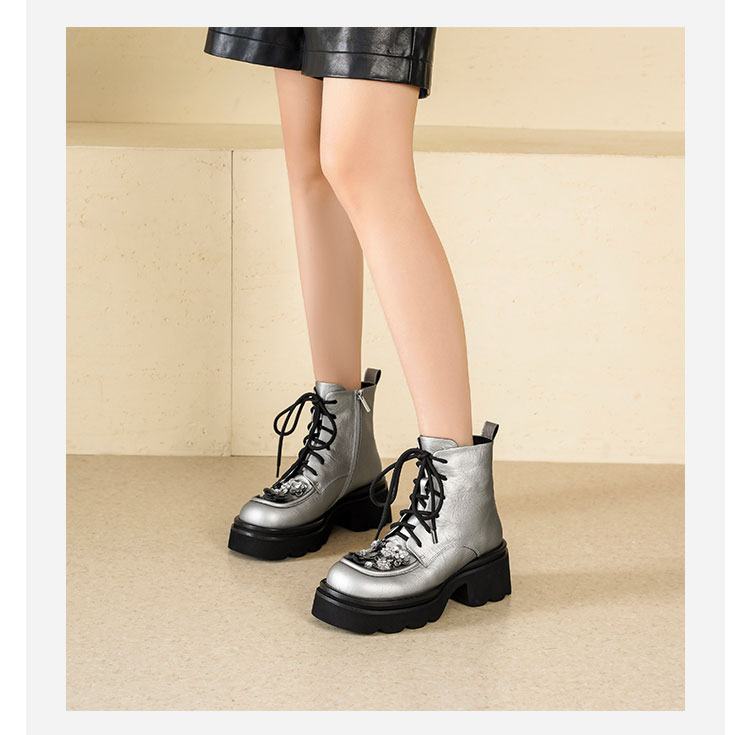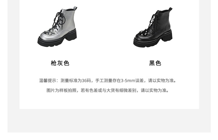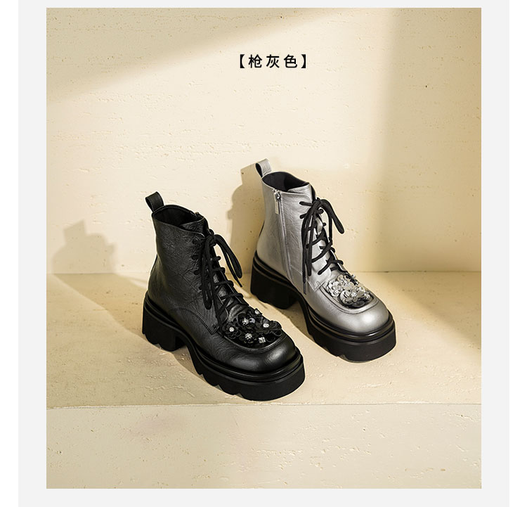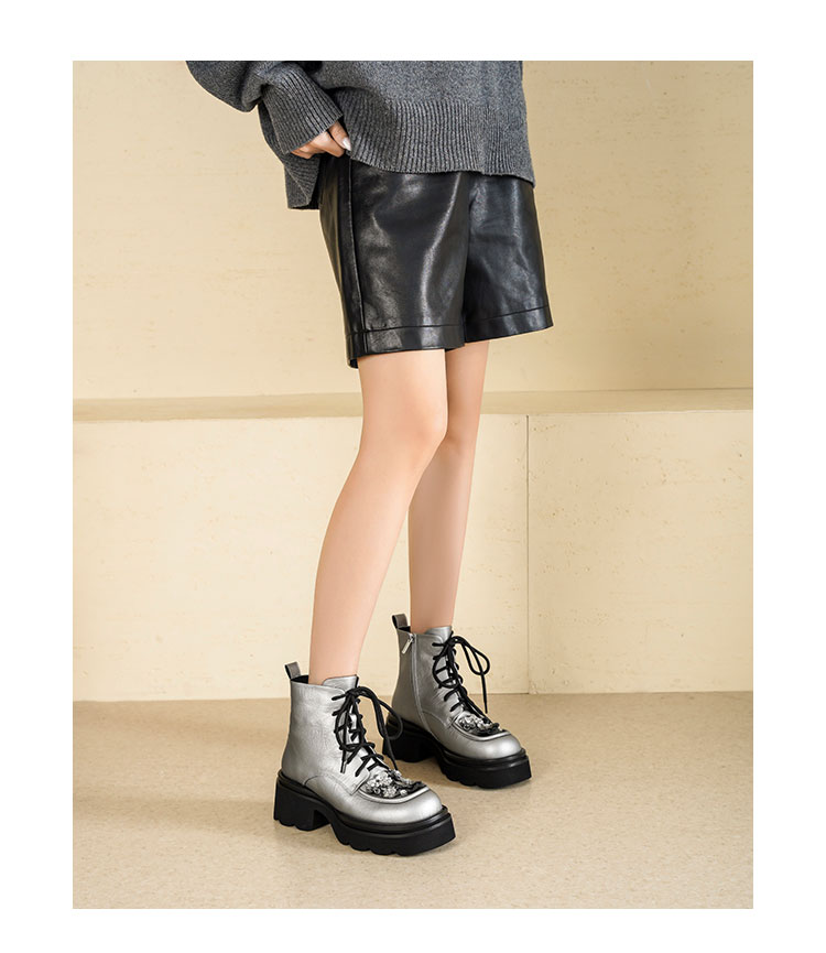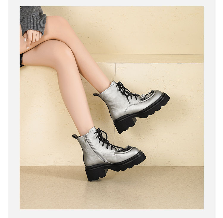Westory2025年冬季方头厚底系带装饰侧拉链马丁靴休闲减龄甜酷短靴W25DS85211