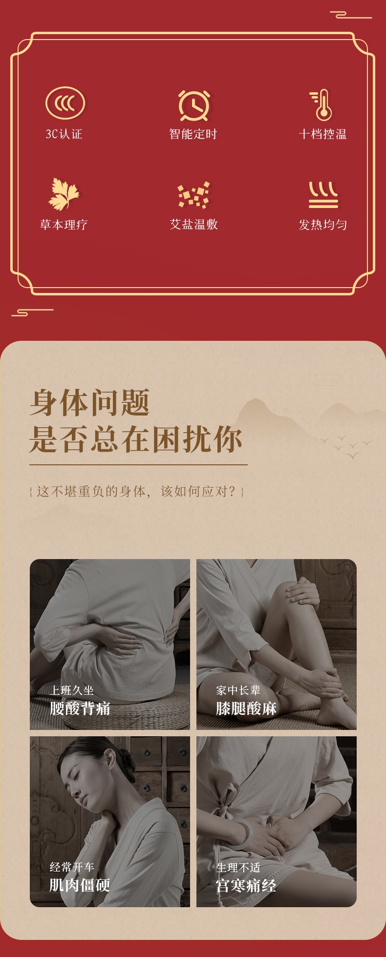 像腰肌劳损、颈椎疼痛、风湿骨痛、经期不适等问题