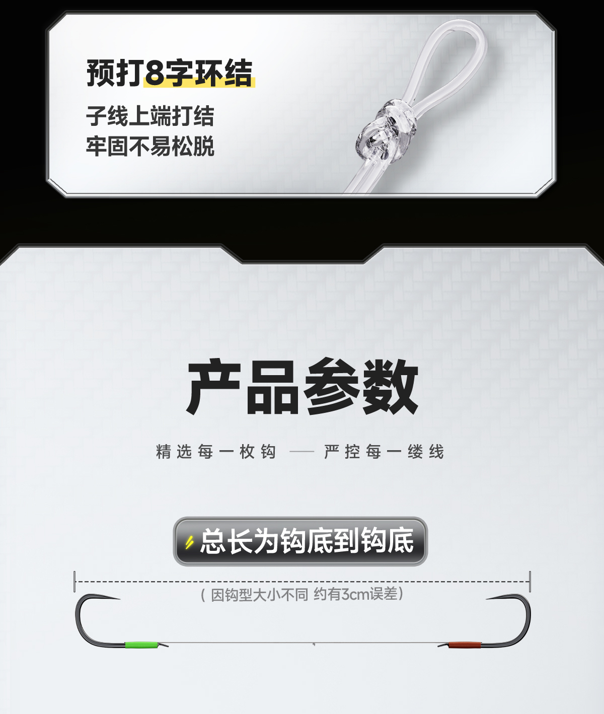 汉鼎无结子线新关东无刺20付鱼钩柔软子线双钩加强钓大鱼钓鱼用具