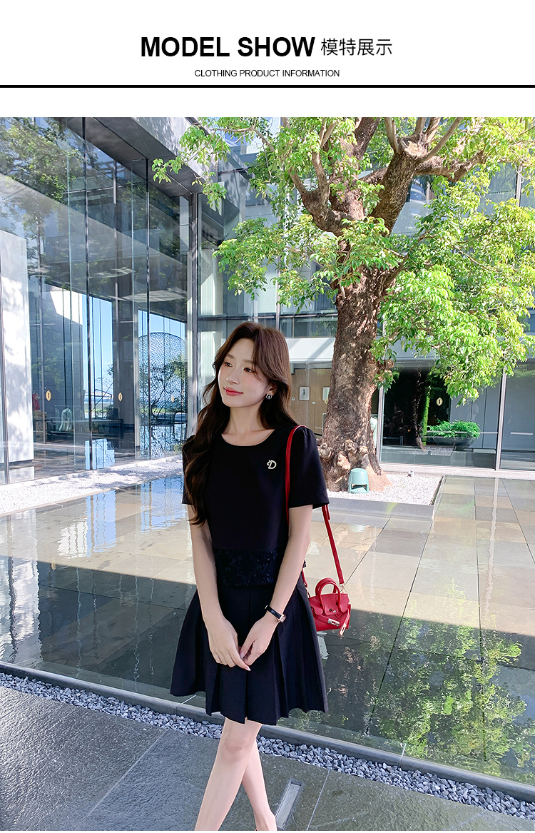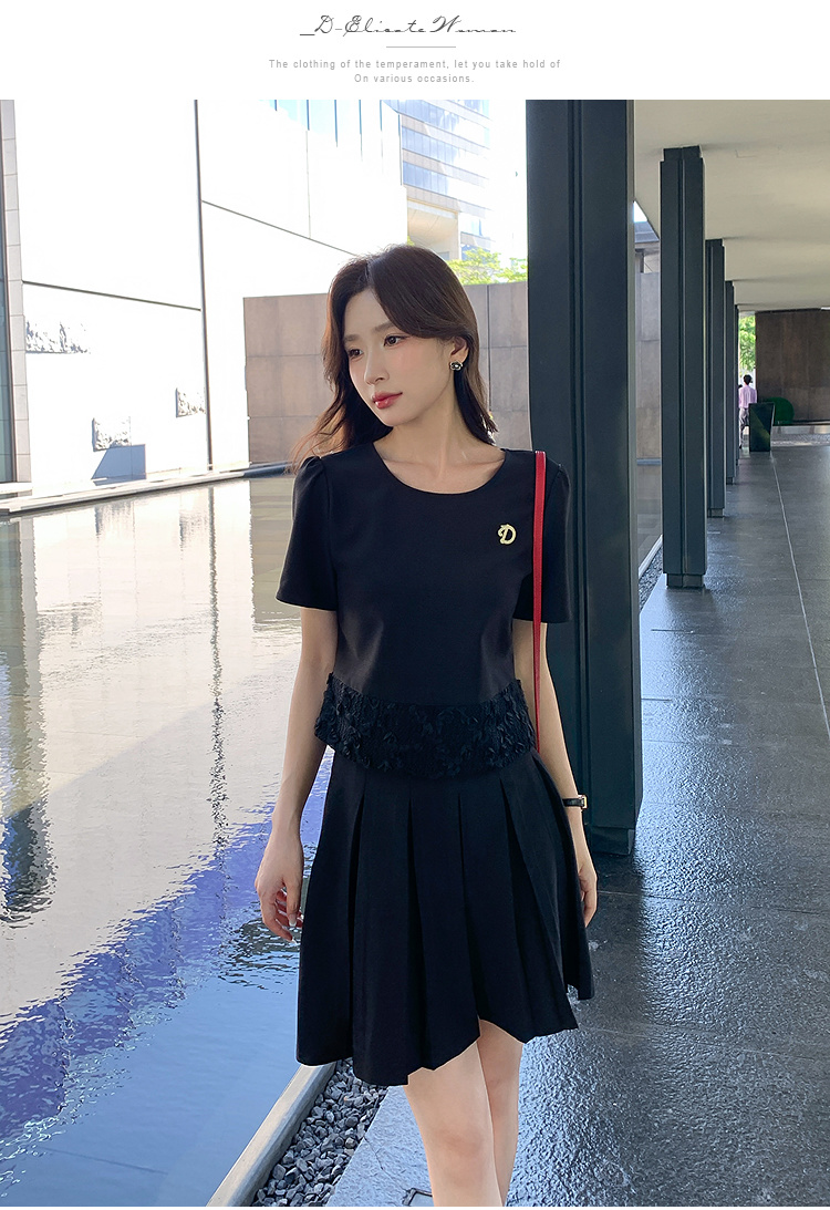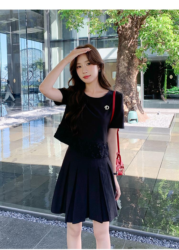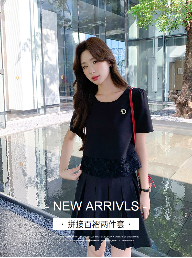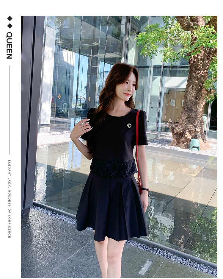 奢姿大码女装2025夏季减龄提花拼接两件套胖妹妹钉珠时尚百褶套装9952921806