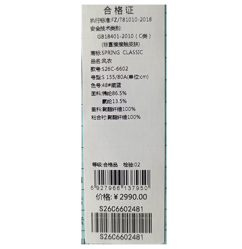 西贝伦风衣S26C6602