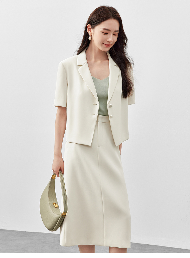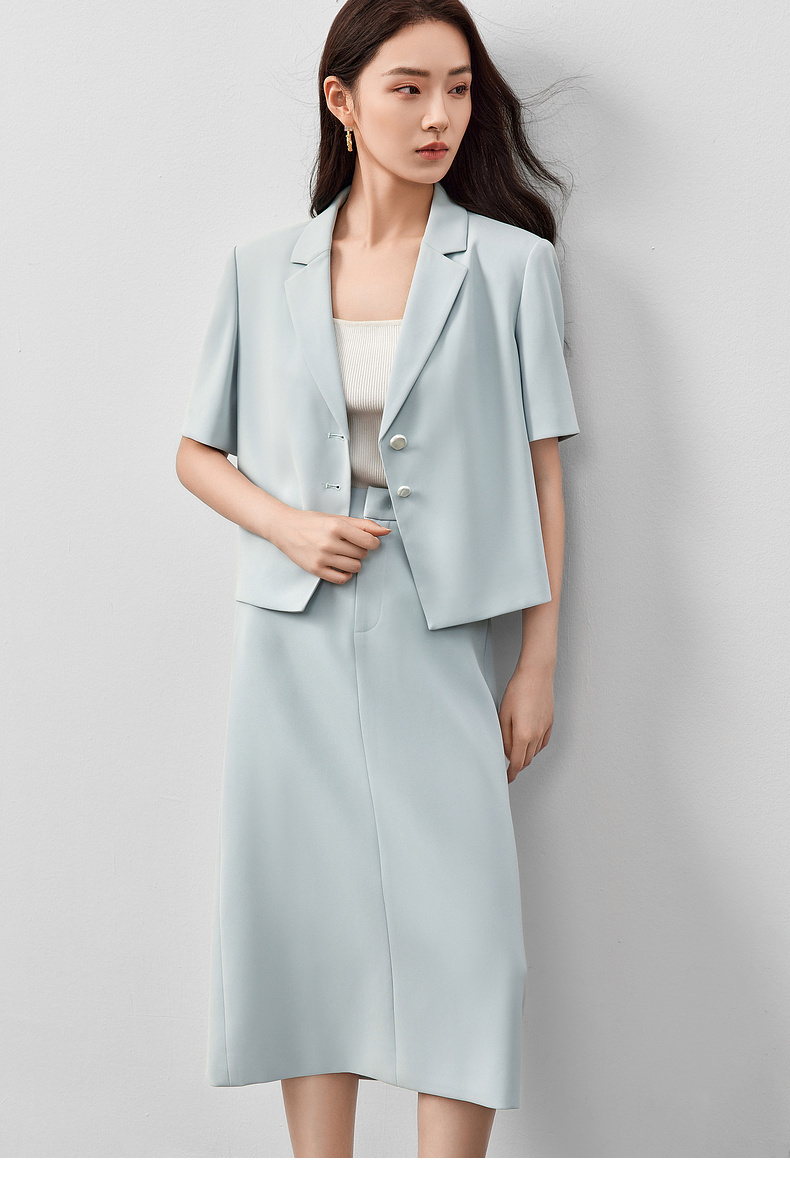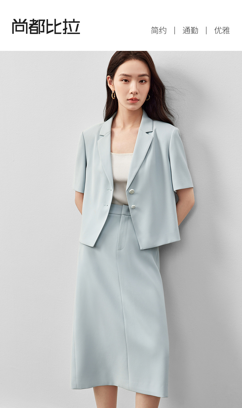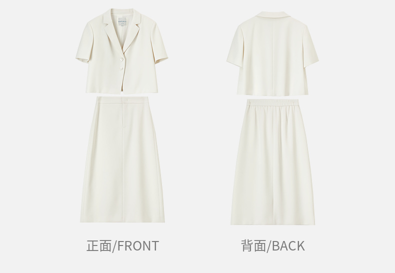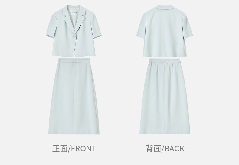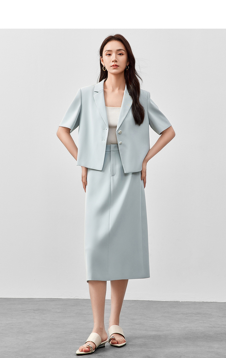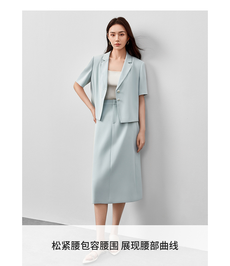 【内购】职场通勤金属扣垫肩短袖西装外套&松紧腰半身裙-151Z58247