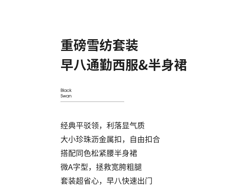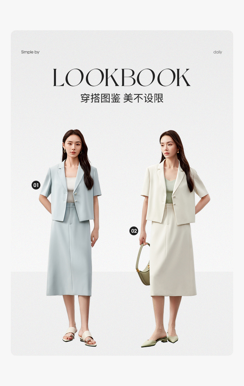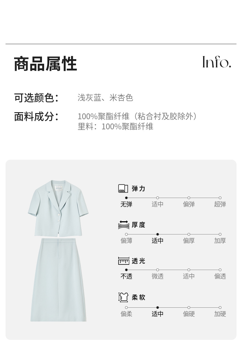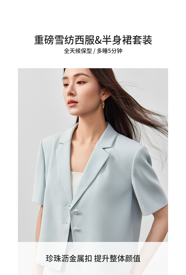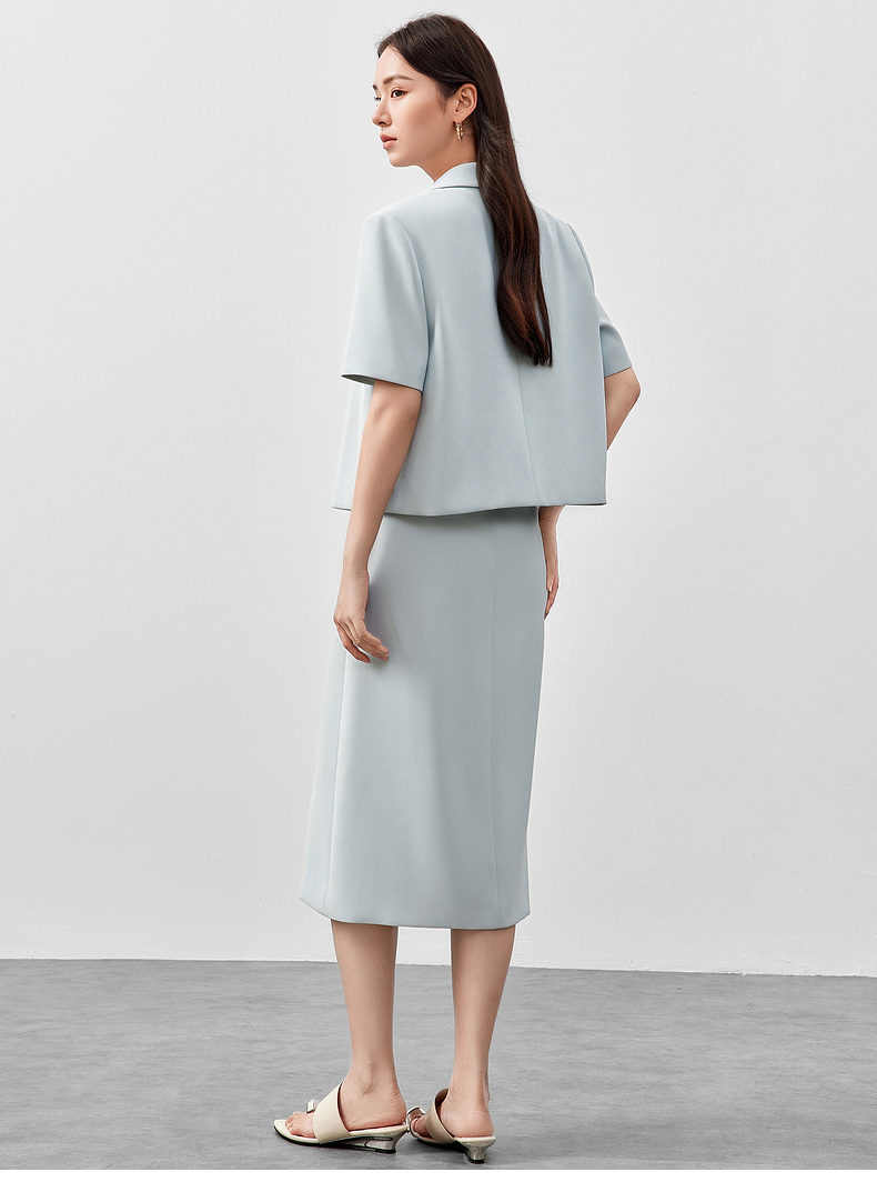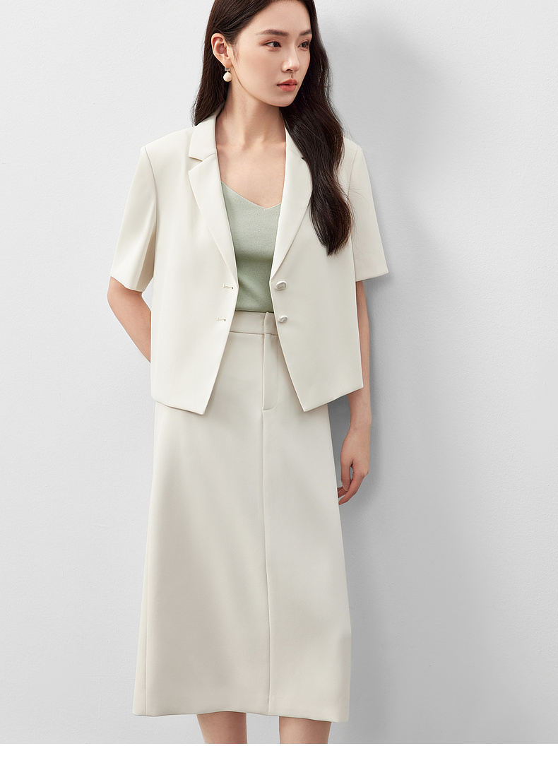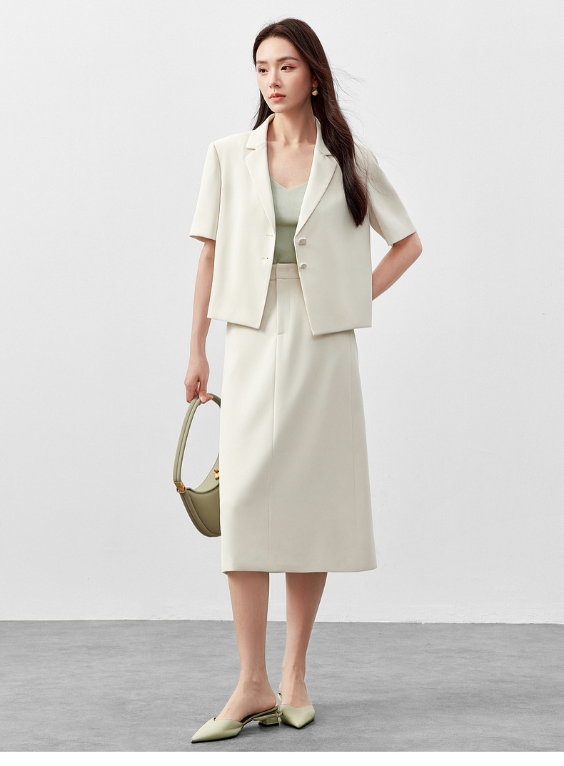 【内购】职场通勤金属扣垫肩短袖西装外套&松紧腰半身裙-151Z58247