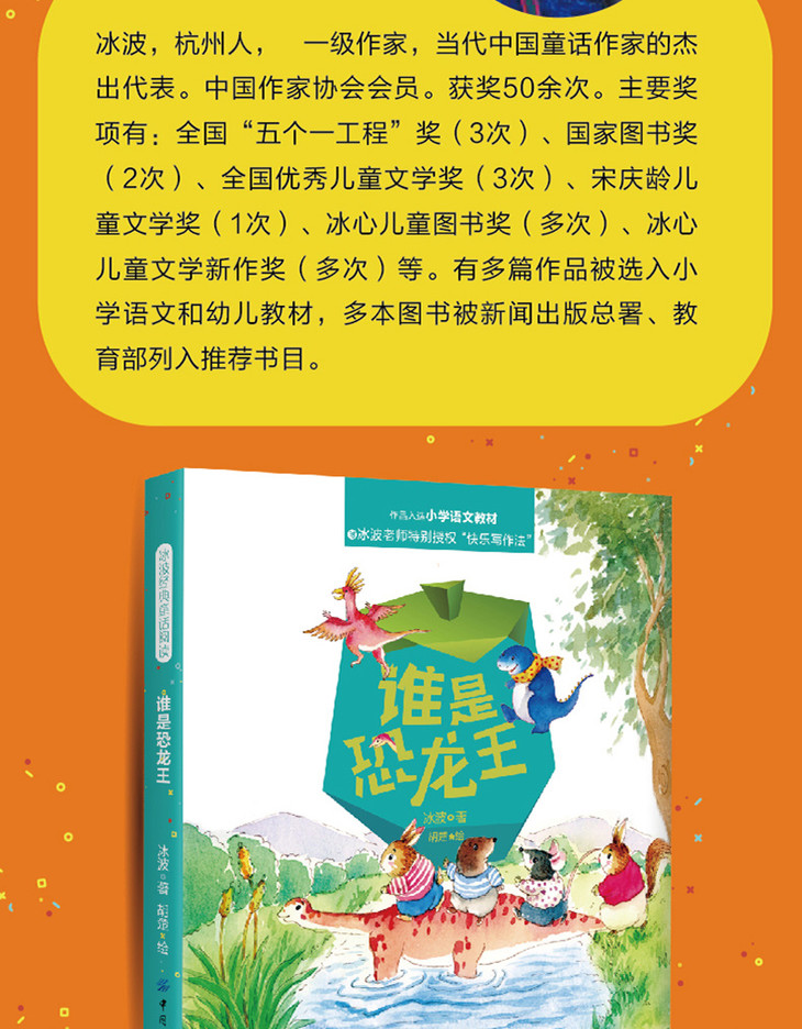 国家一级作家,课本名家——冰波经典作品,入选小学语文教材,获众多儿童文学奖:国家图书奖、“五个一工程”奖、冰心儿童图书奖等。童书作家榜上榜作家,作品畅销几百万册。