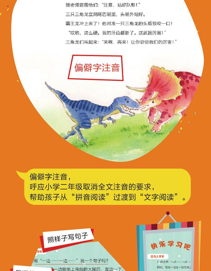 跟着冰波的童话学语文,偏僻字注音,呼应小学二年级取消全文注音的要求,帮助孩子从“拼音阅读”过渡到“文字阅读”;书后附有“快乐学习吧”,有字、词、句子及与写作相关的练习。