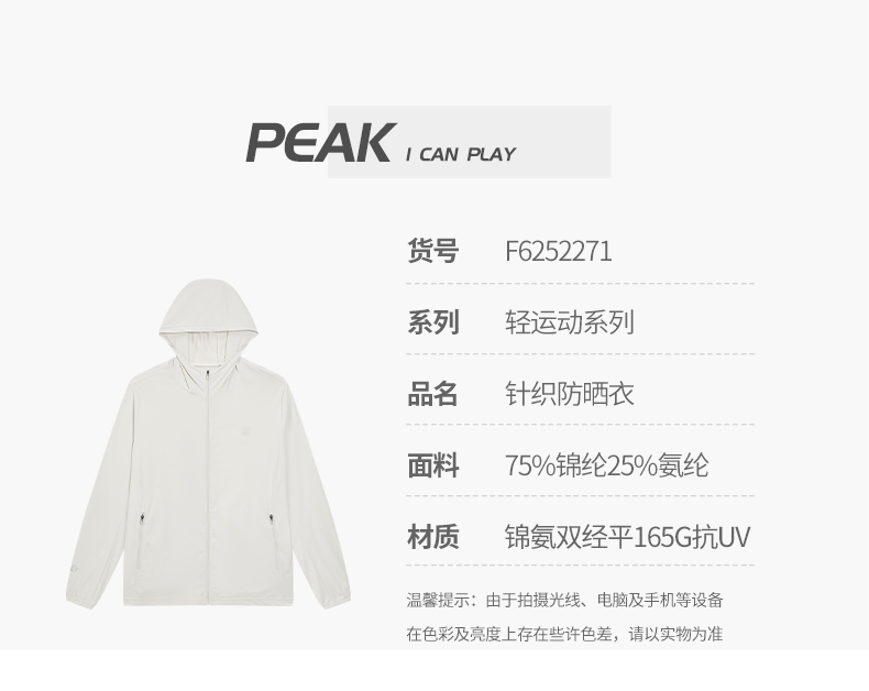 匹克2025年新款轻运动系列男款针织防晒衣F6252271