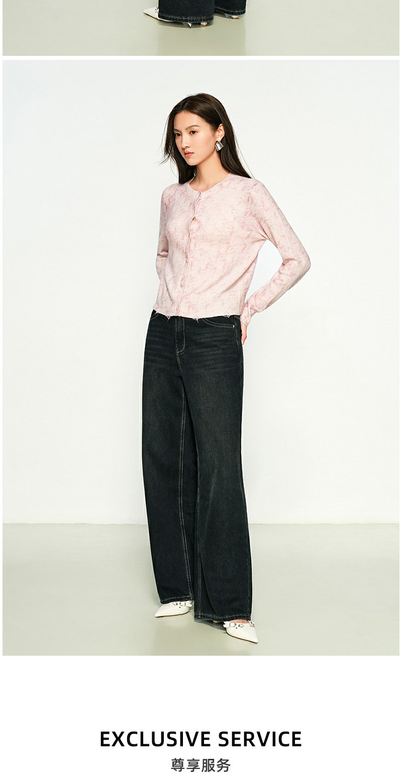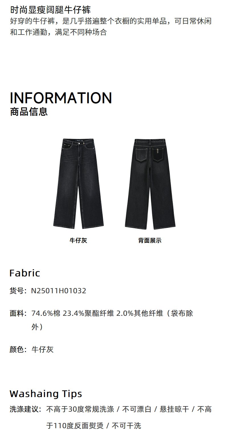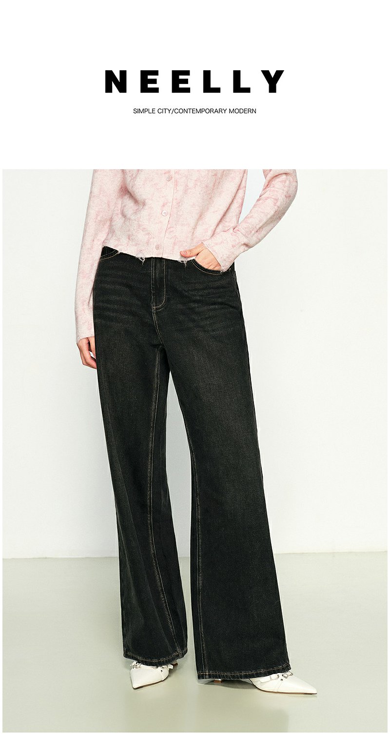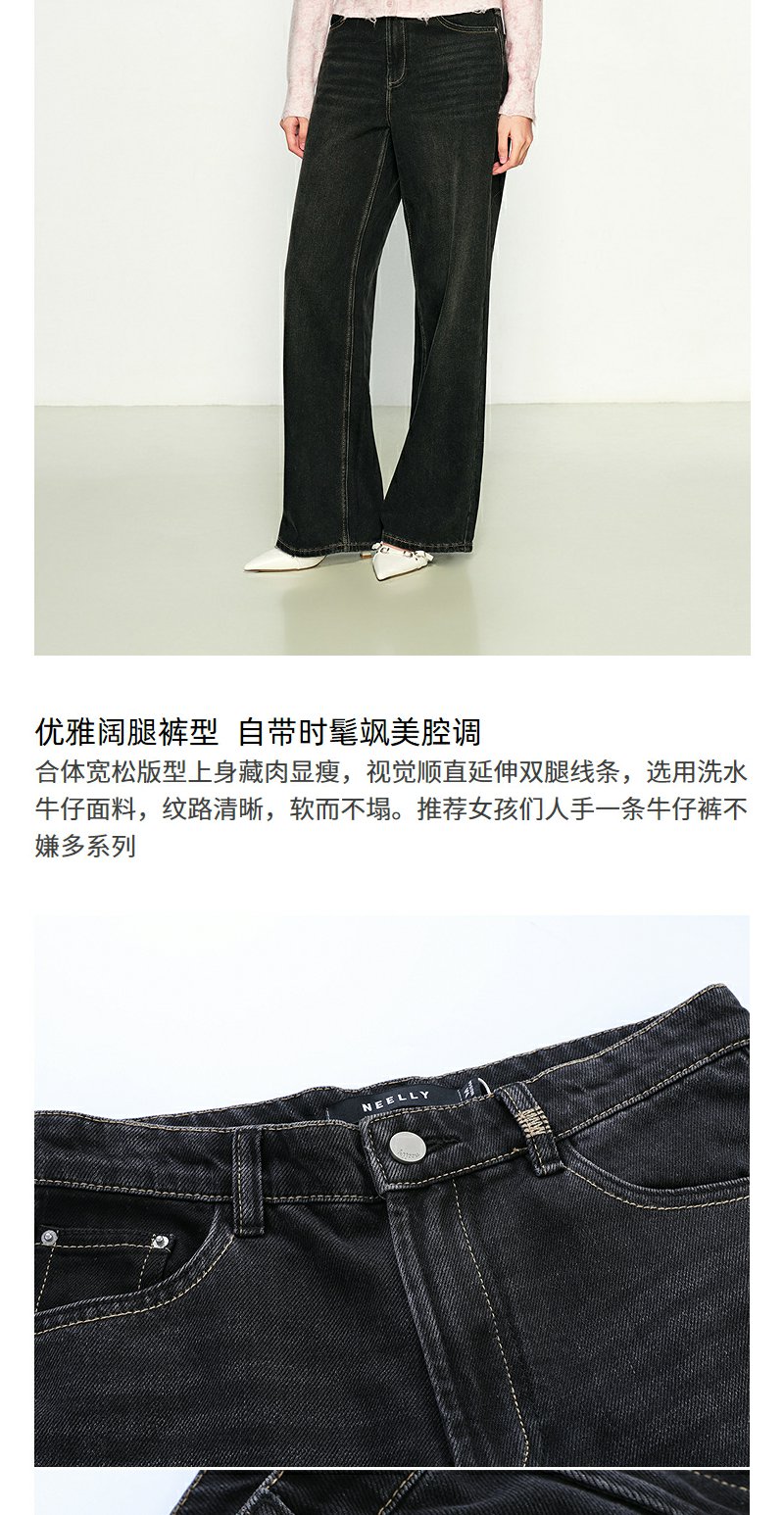 NEELLY纳俪商场同款秋季新款时尚显瘦深色阔腿牛仔裤女微弹长裤N25094H04631