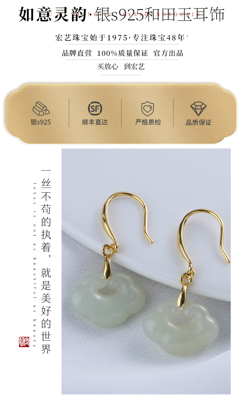 【宏艺珠宝】如意灵韵和田玉祥云款·银s925耳饰