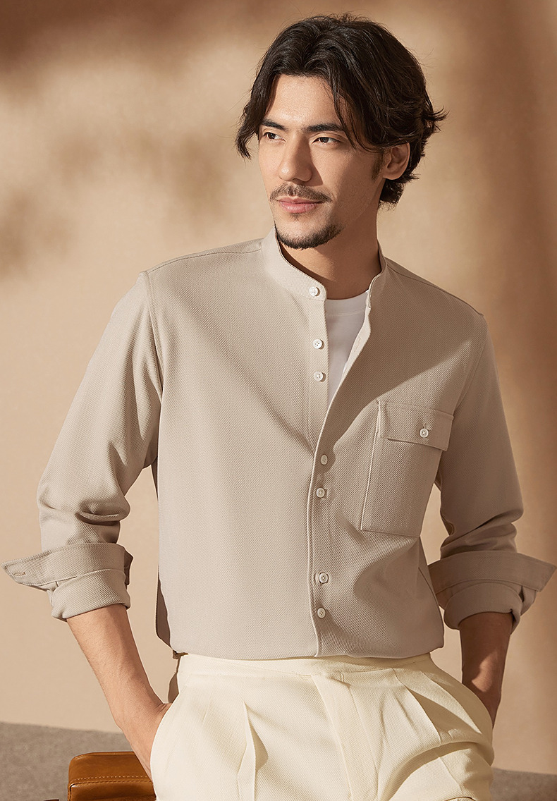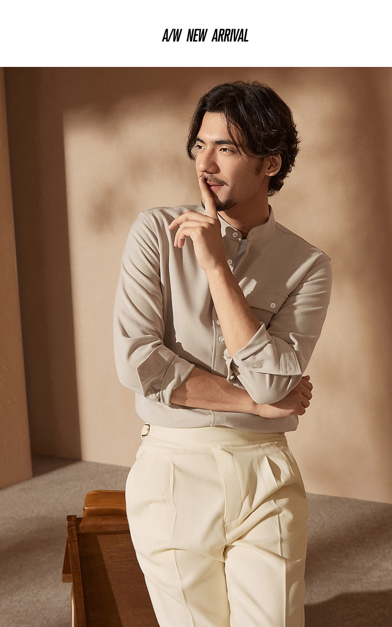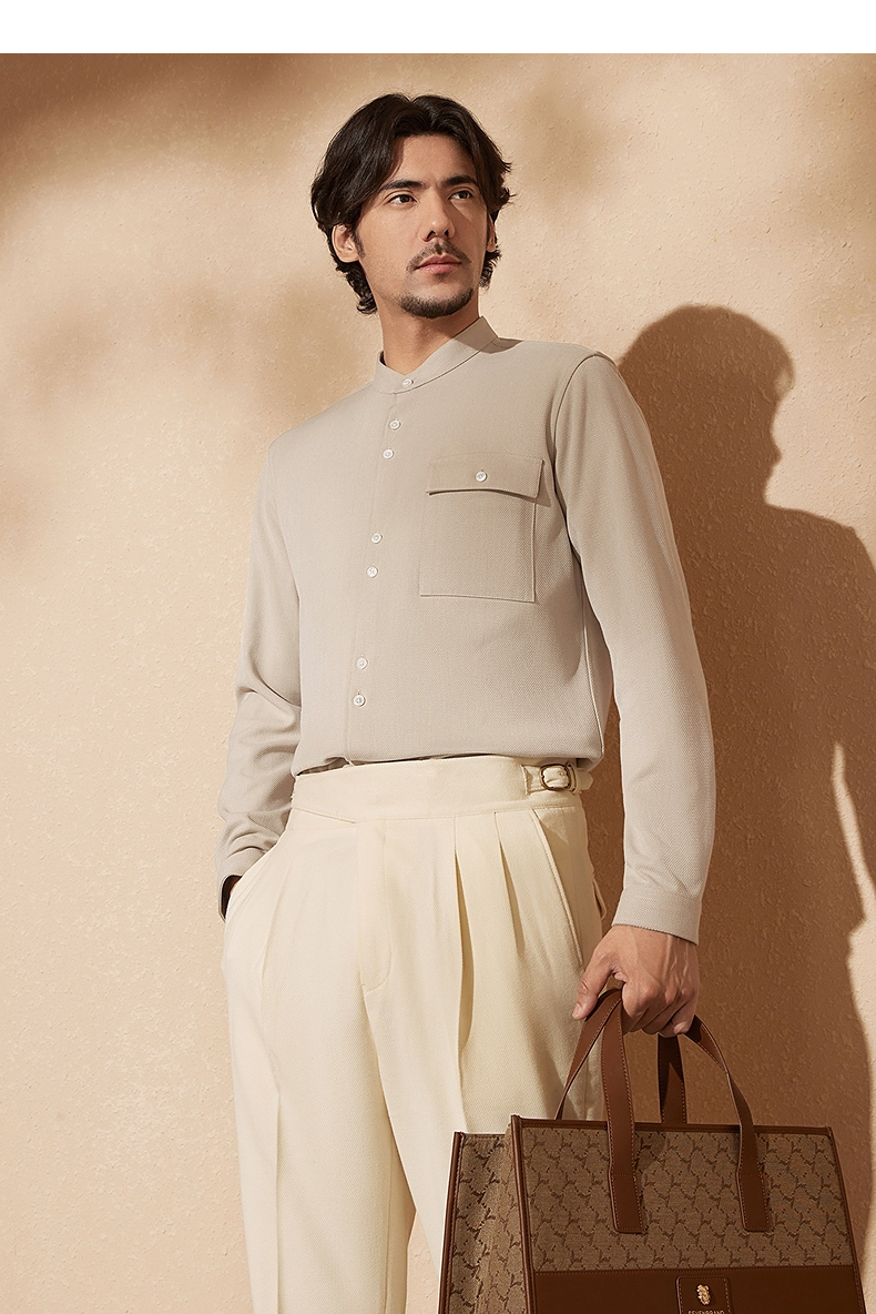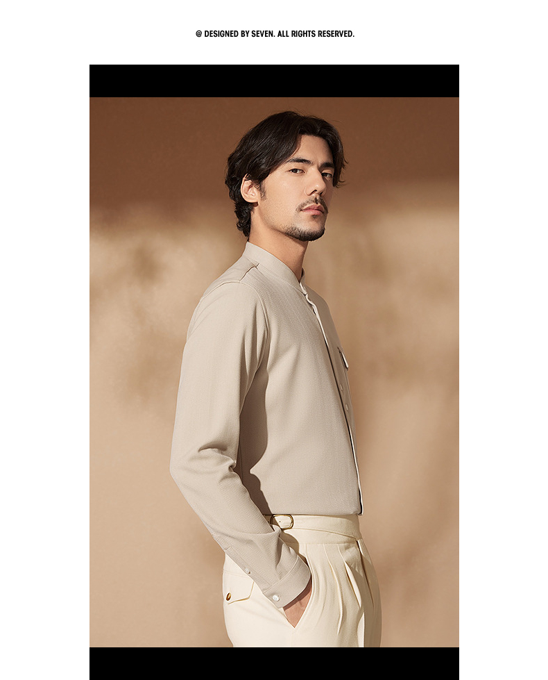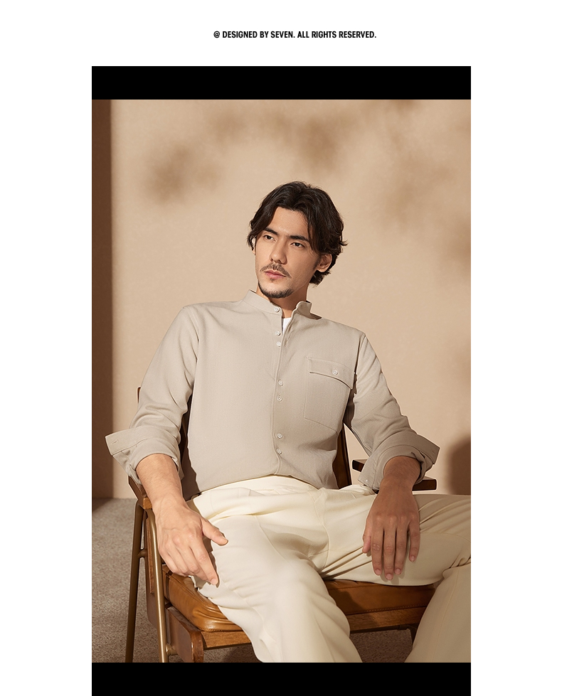 【中华立领】柒牌长袖衬衫男2024秋季新款时尚休闲口袋工装风衬衣 127A70930