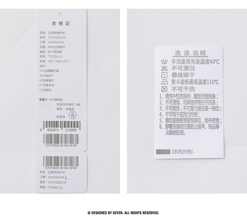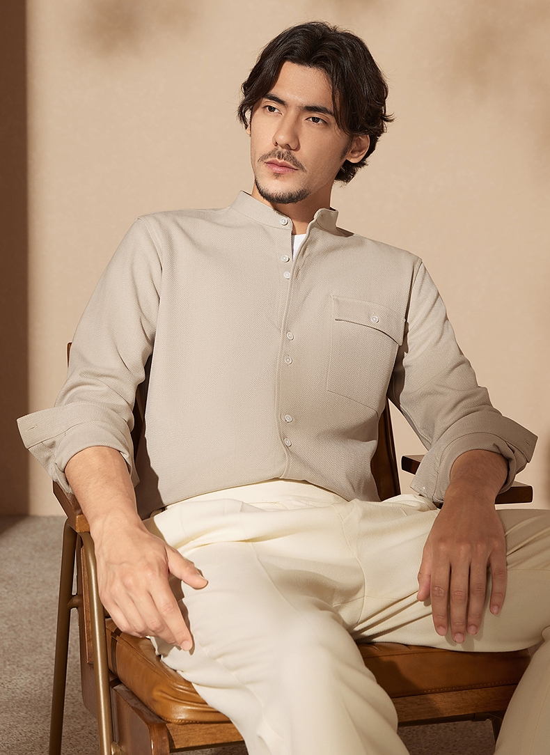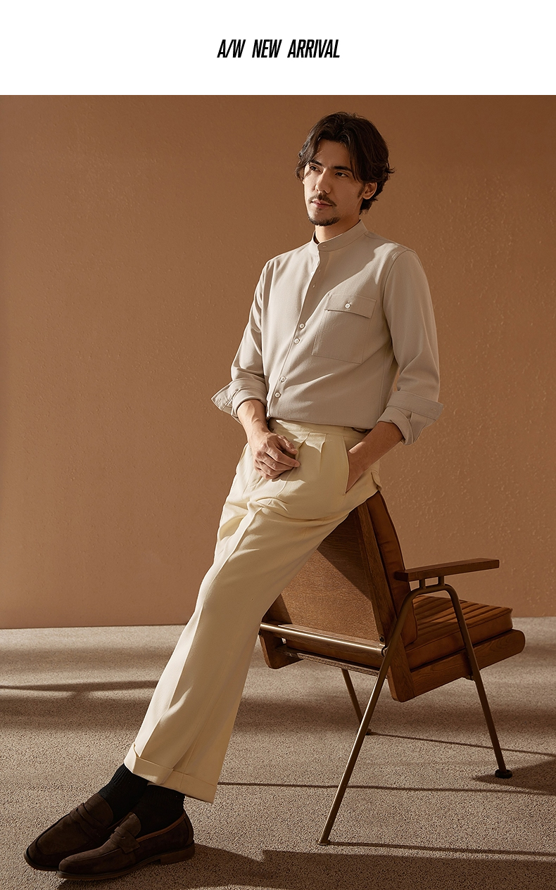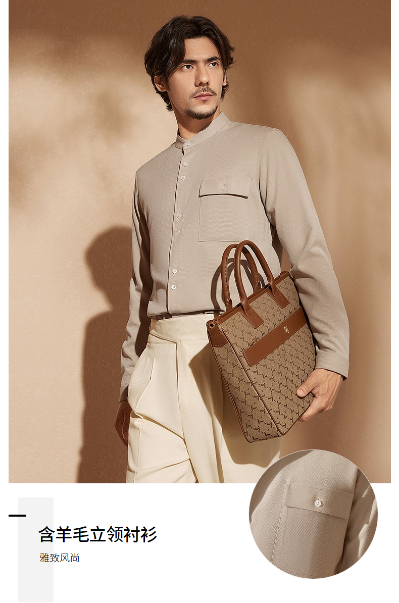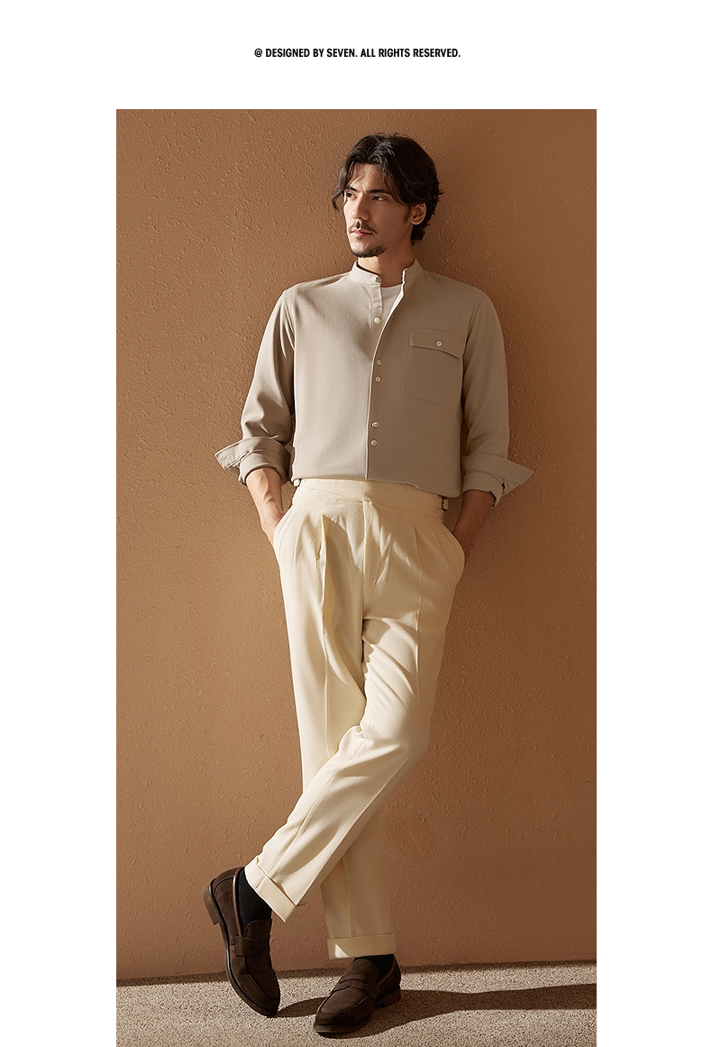 【中华立领】柒牌长袖衬衫男2024秋季新款时尚休闲口袋工装风衬衣 127A70930