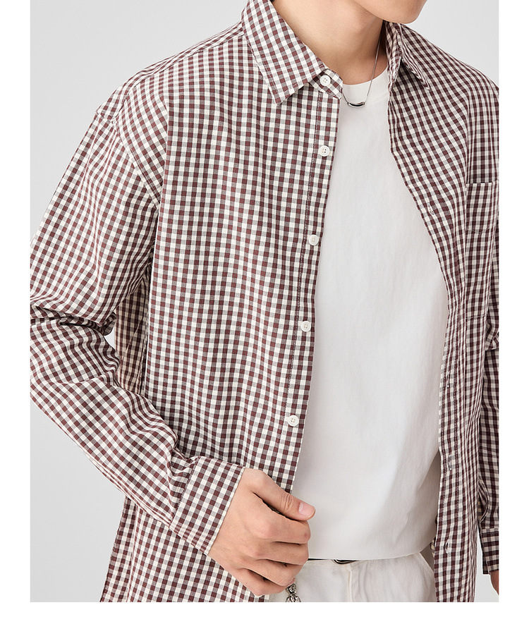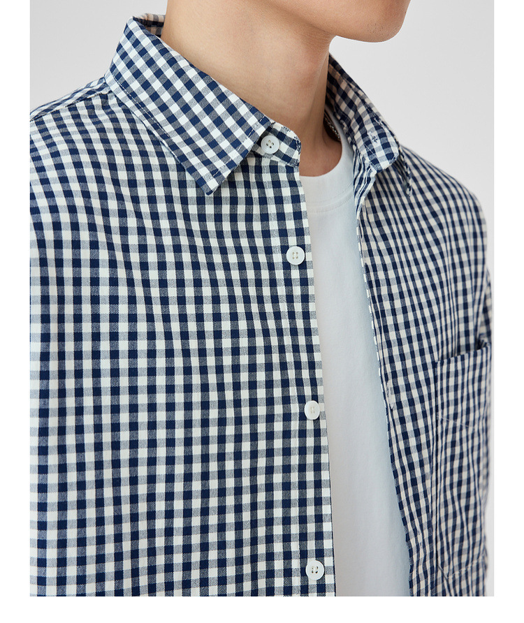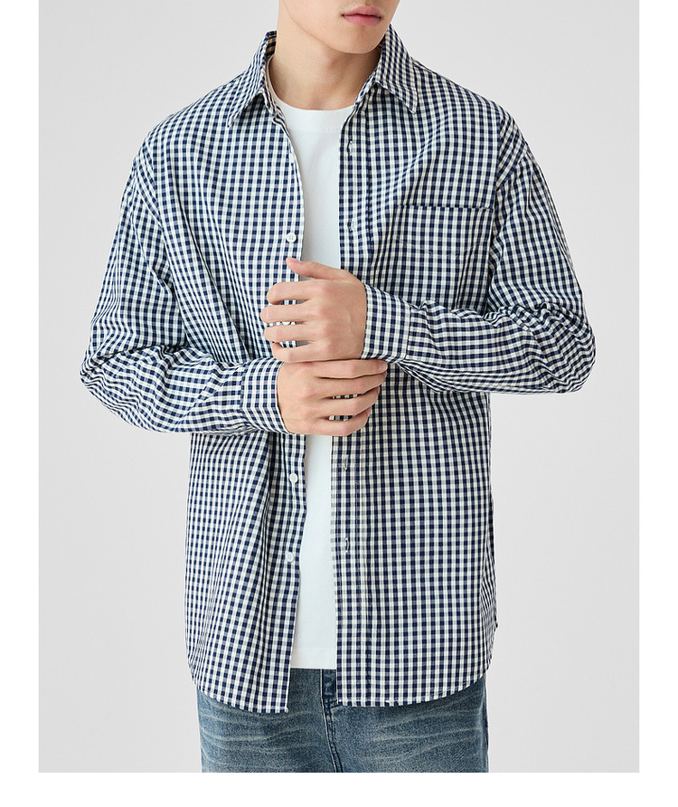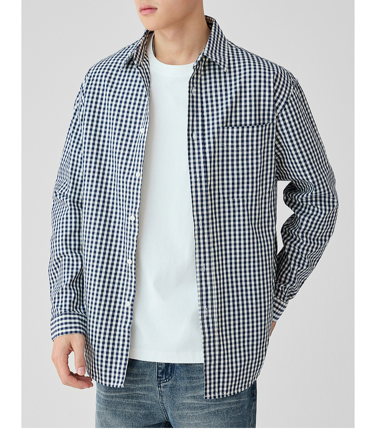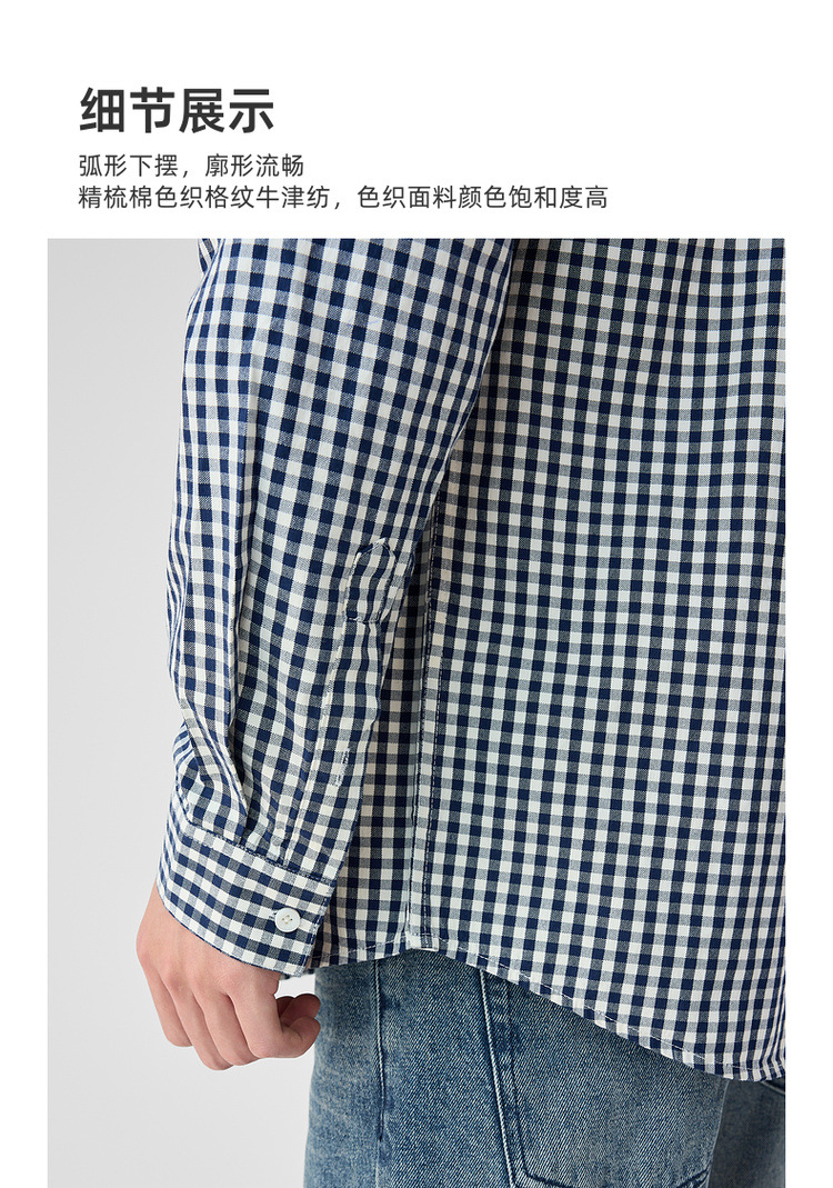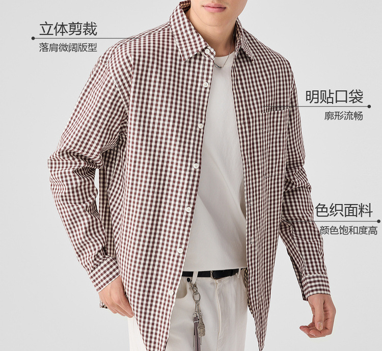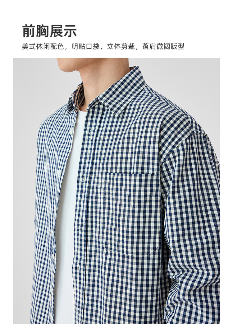 墨麦客男装牛津纺格子衬衫男2025春新款精梳棉落肩男士衬衣50310
