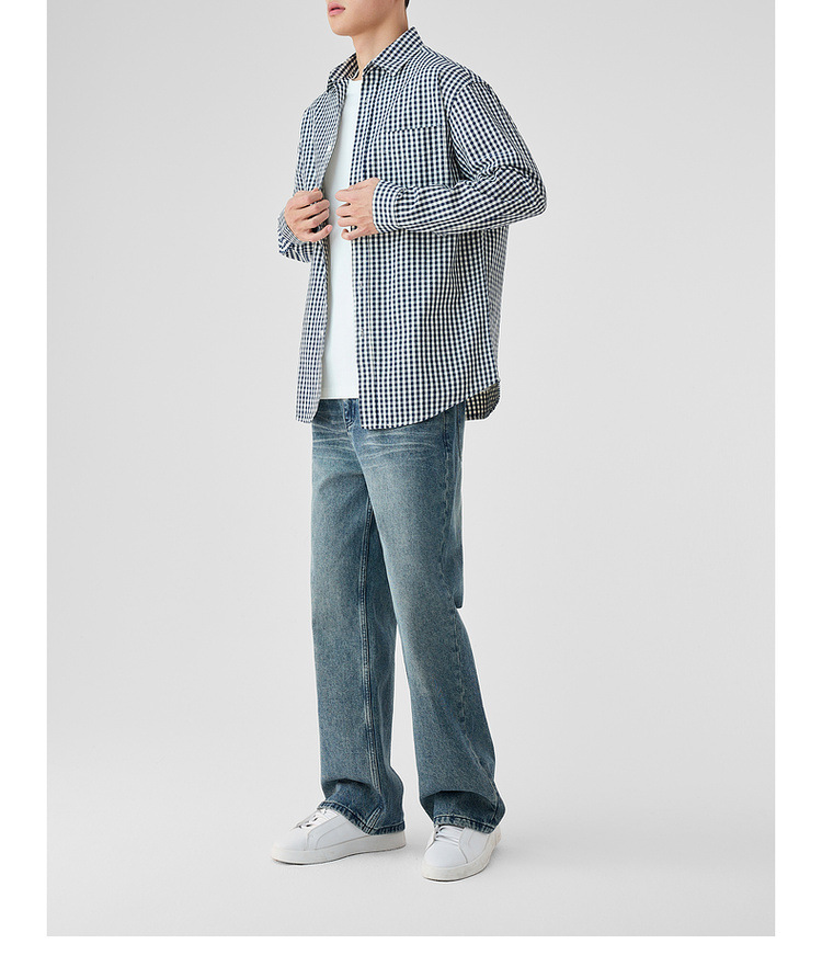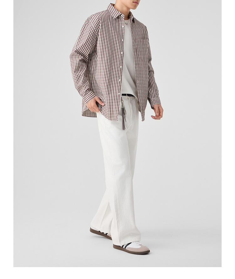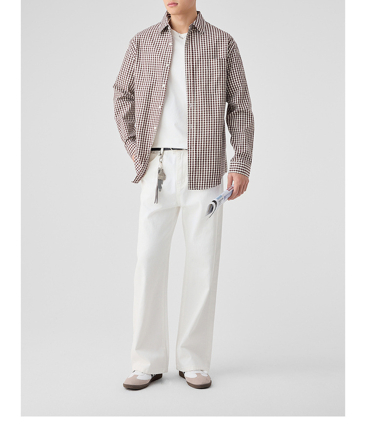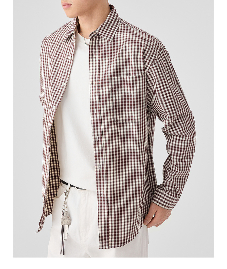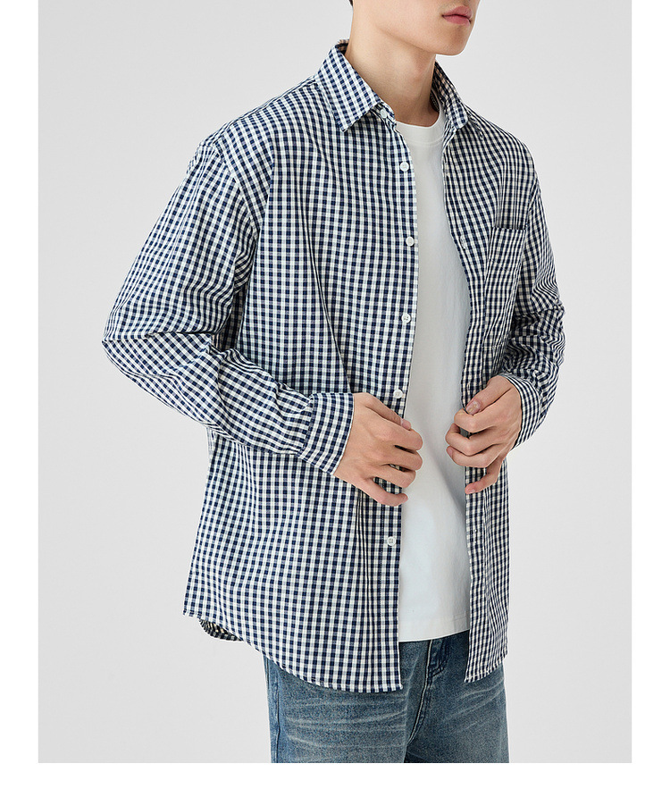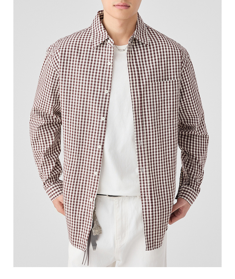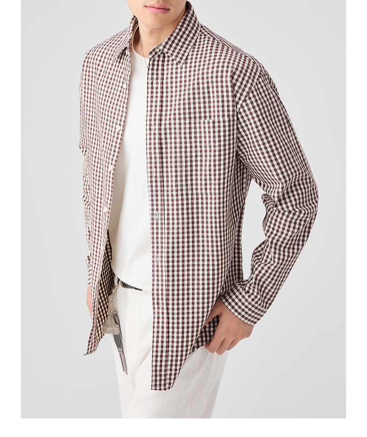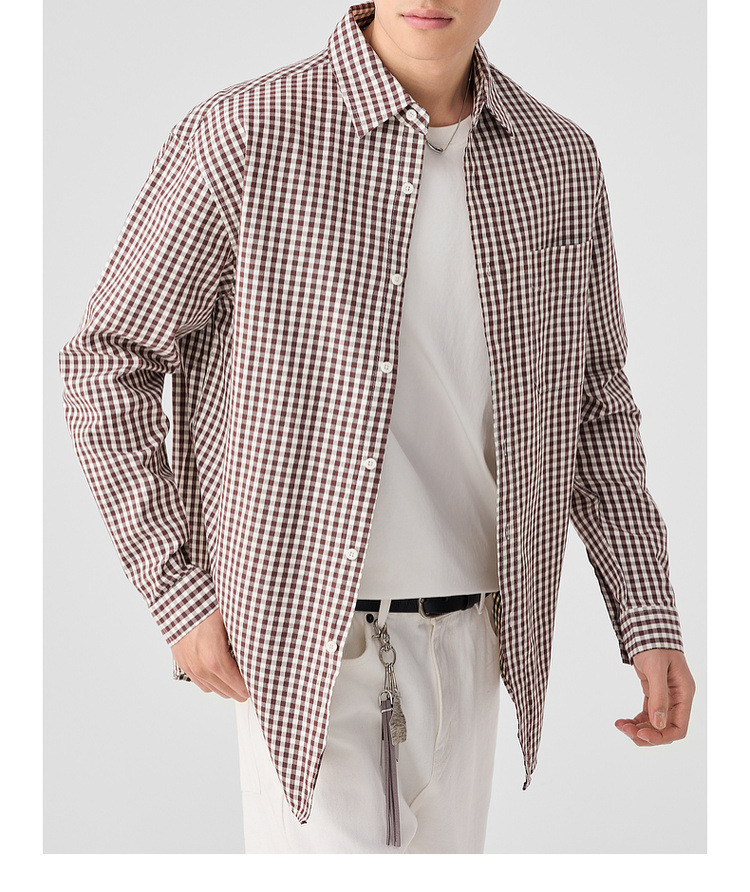 墨麦客男装牛津纺格子衬衫男2025春新款精梳棉落肩男士衬衣50310