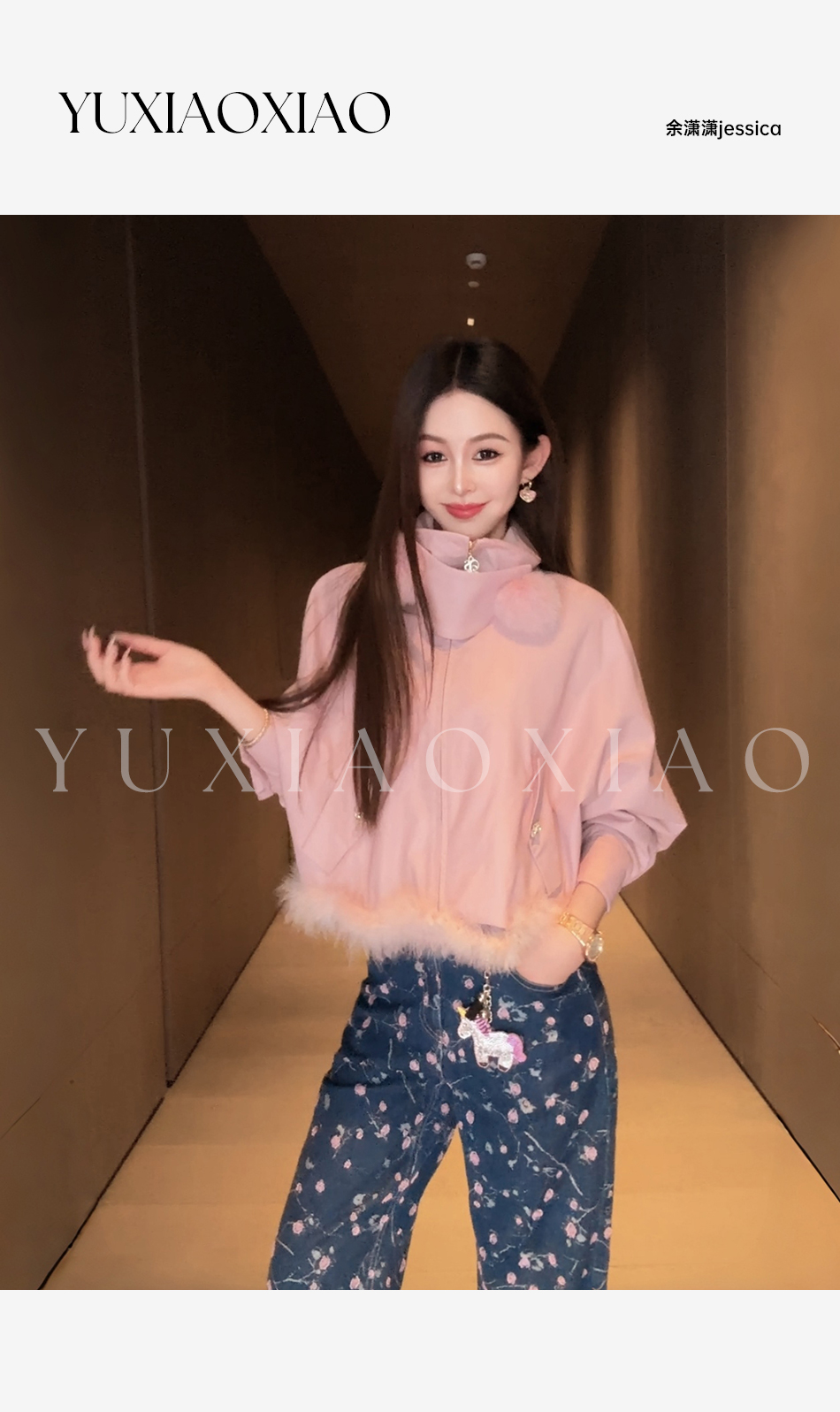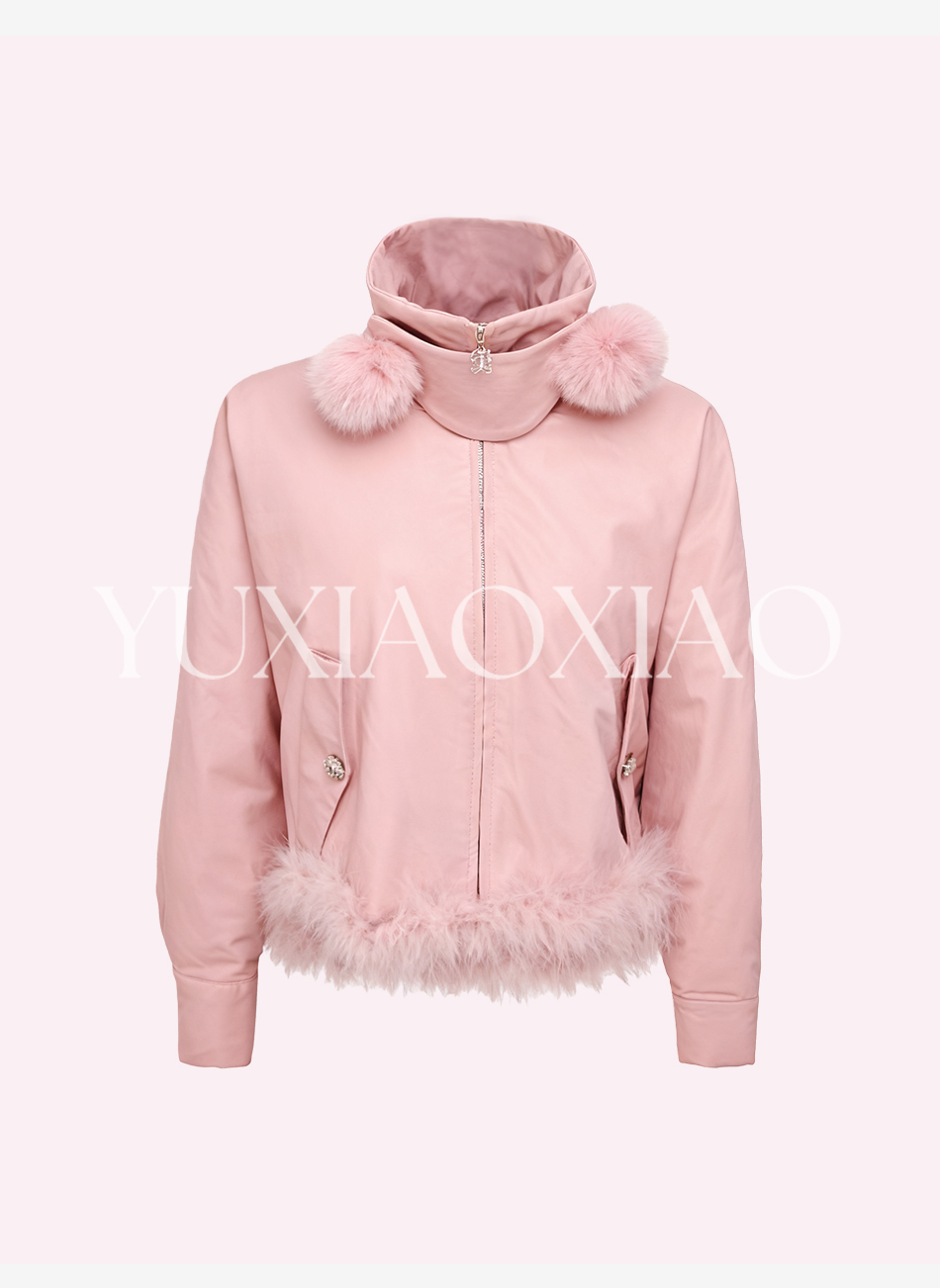 余潇潇【派克情书】立领蝙蝠袖可拆卸狐狸毛球领袢90绒皮衣羽绒外套