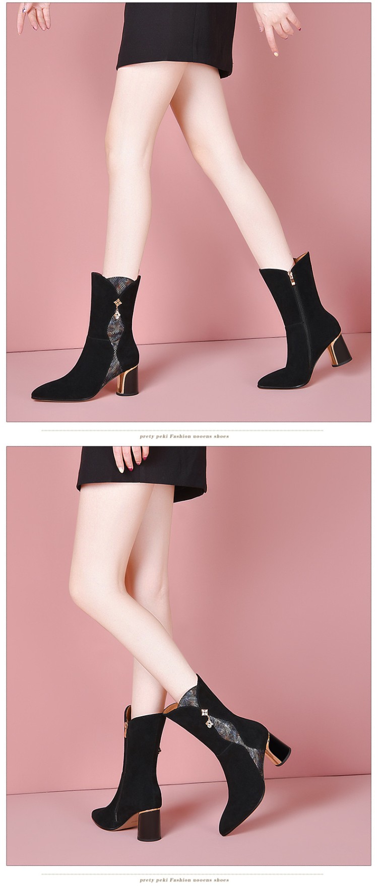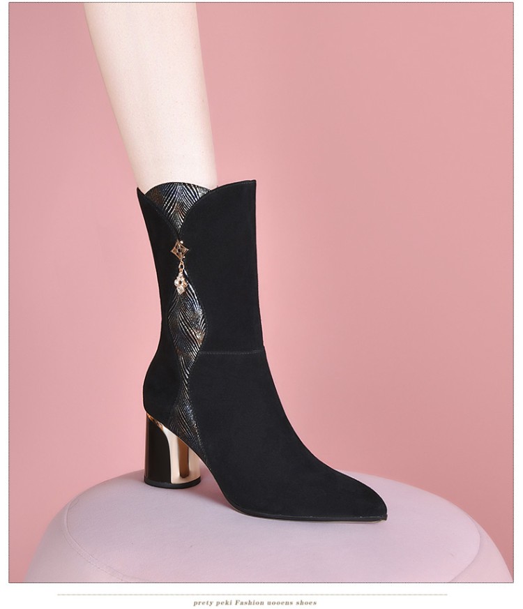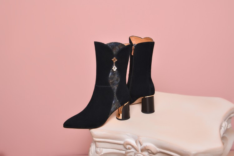 【预售5天】时尚百搭羊反皮气质短靴女秋冬新款粗跟马丁靴SY&21025