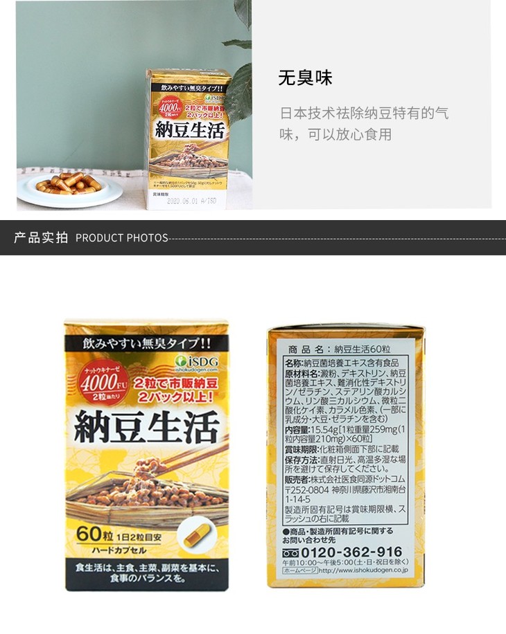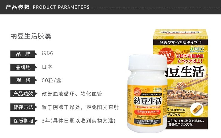 【保税仓】ISDG 纳豆生活 纳豆激酶 纳豆菌胶囊 60粒 商品图0