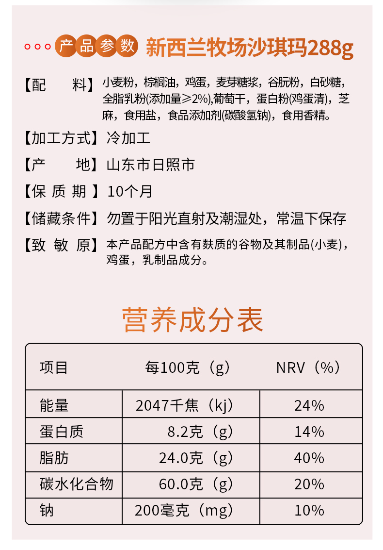 舒芙里 新西兰牧场沙琪玛 288g*4