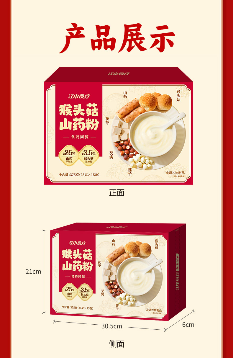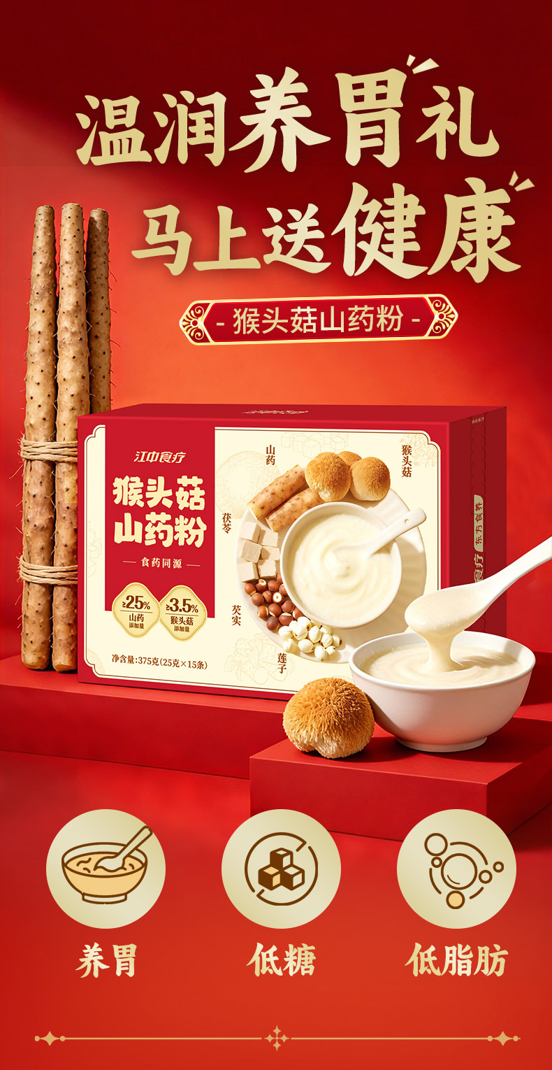 【积分兑换】江中食疗 猴头菇山药粉375g 焦作铁棍山药养胃粉老年人滋补营养早餐代餐 2026年3月生产/保质期12个月