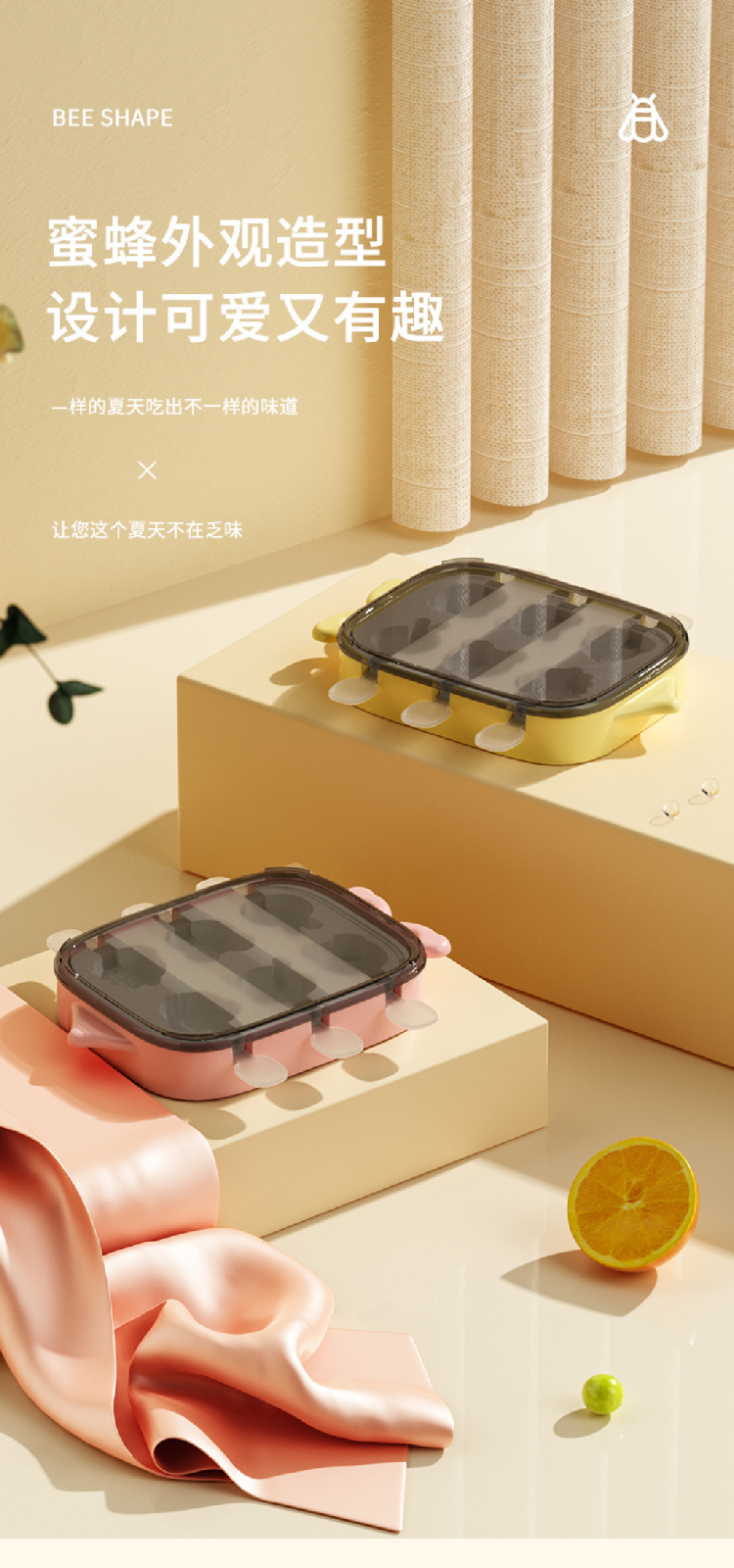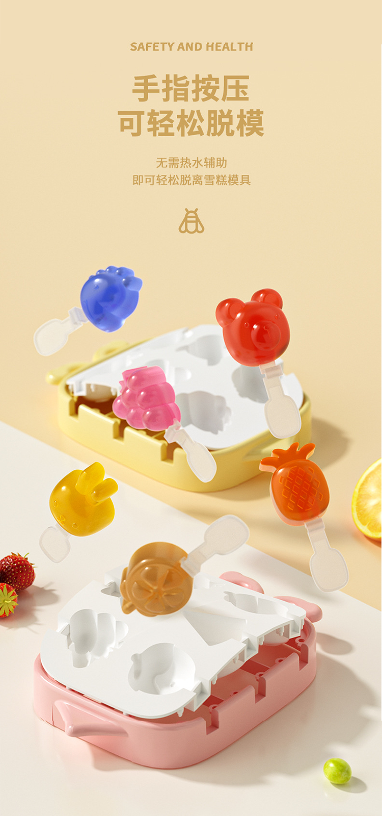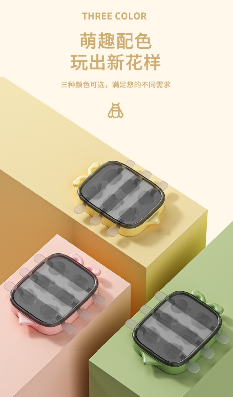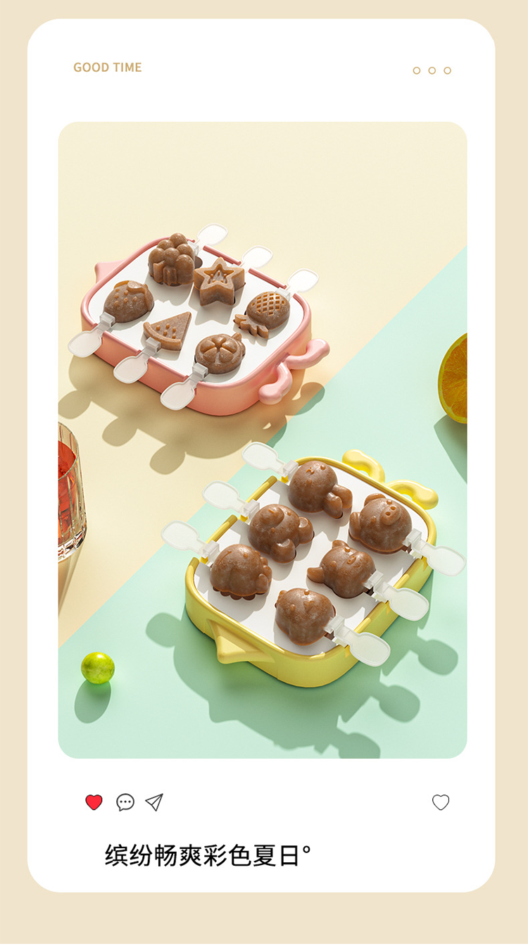 【卡通雪糕6宫格模具】食品级家用冰棍冰淇淋模具 环保硅胶DIY棒盒冰模具