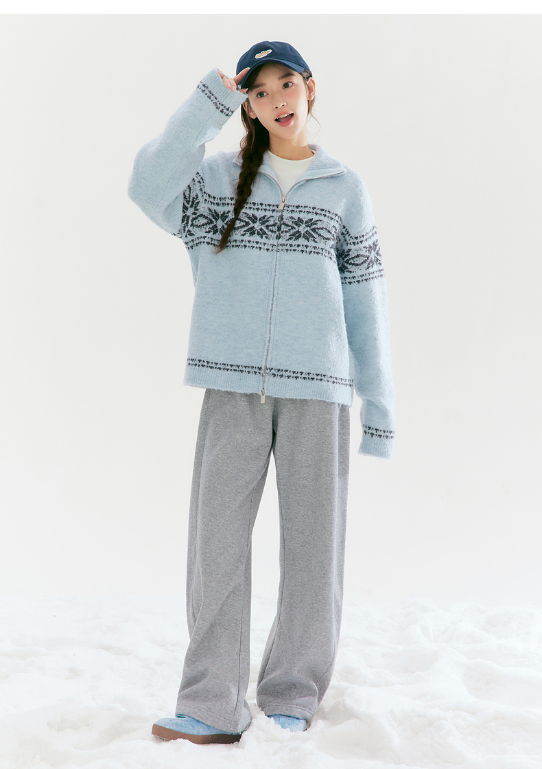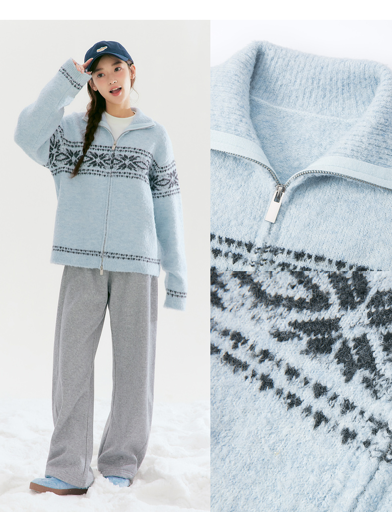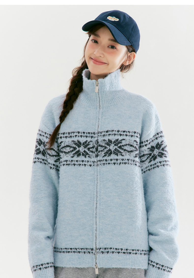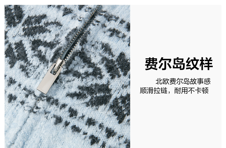 笛莎Deesha青少年女童毛衣2025冬季女童费尔岛纹样拉链开衫外套毛衣