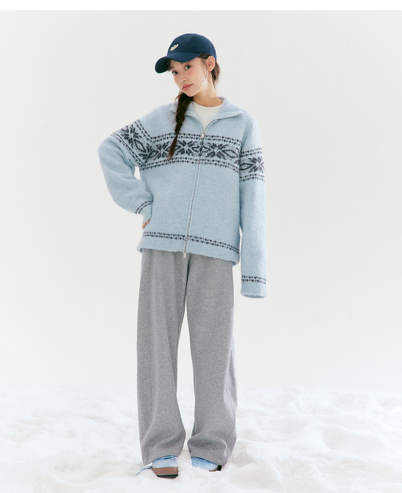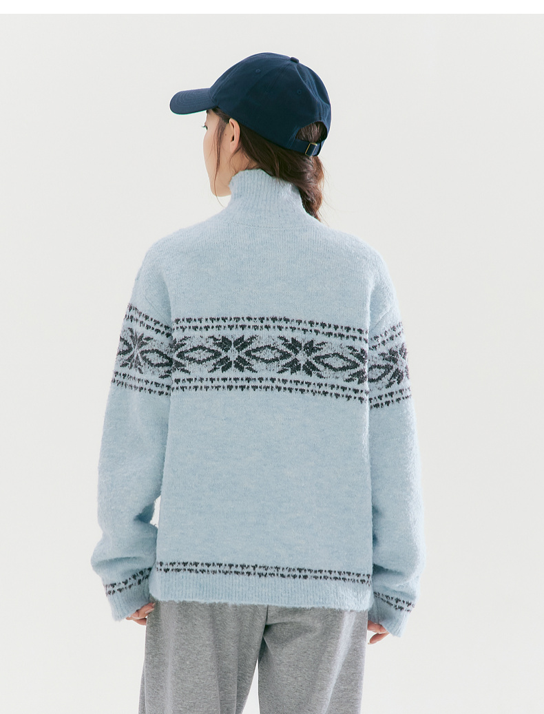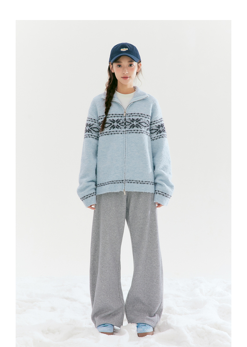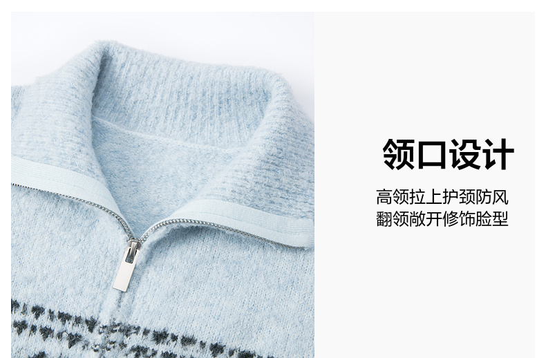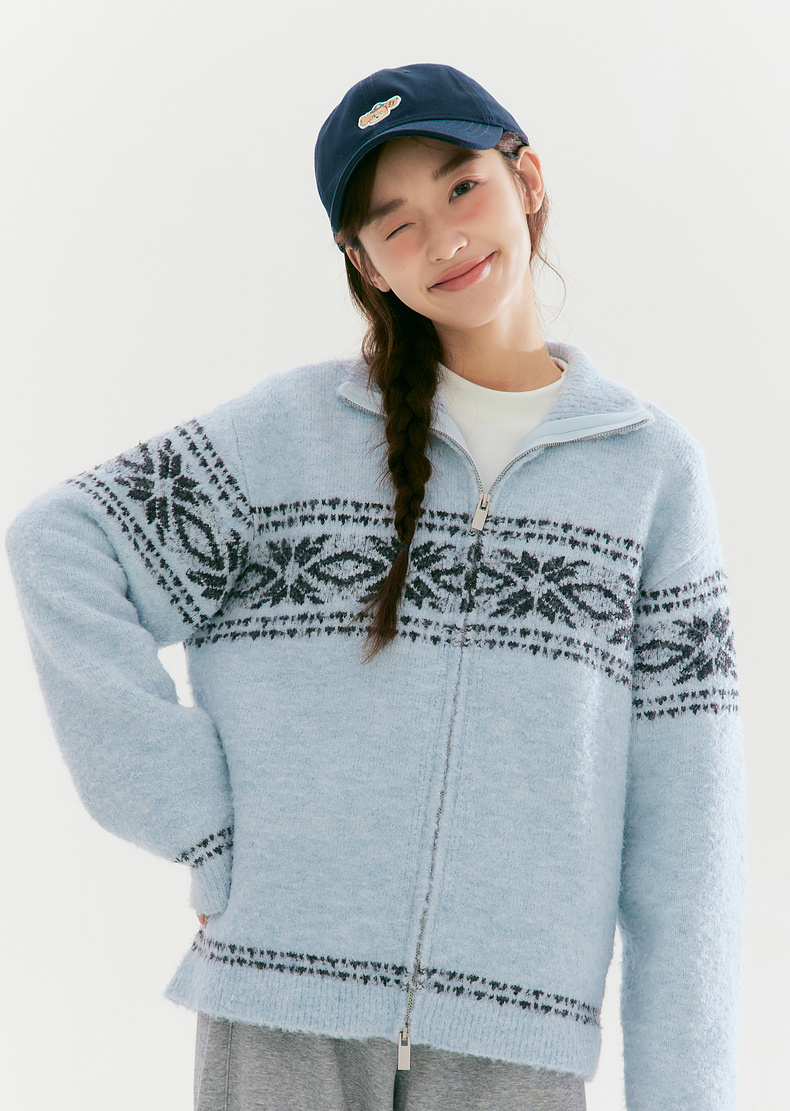 笛莎Deesha青少年女童毛衣2025冬季女童费尔岛纹样拉链开衫外套毛衣