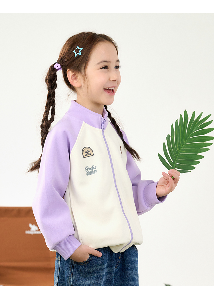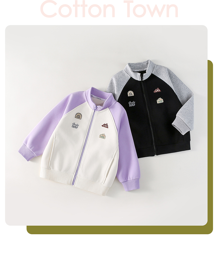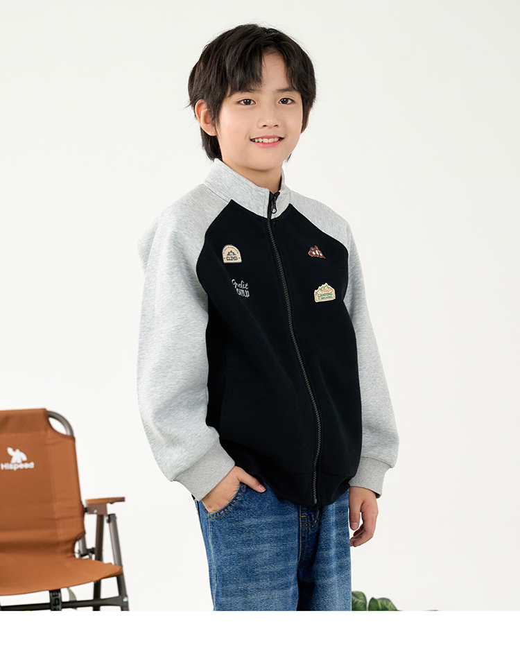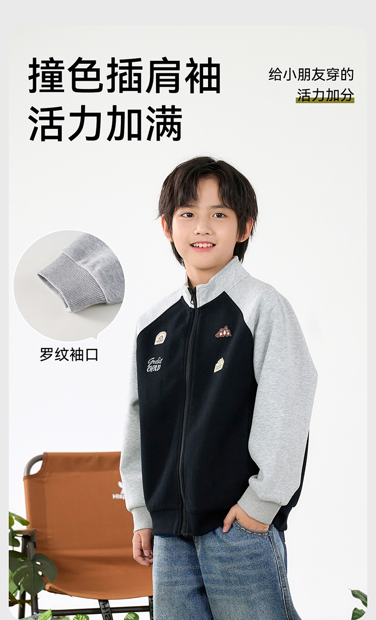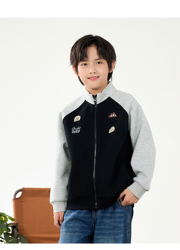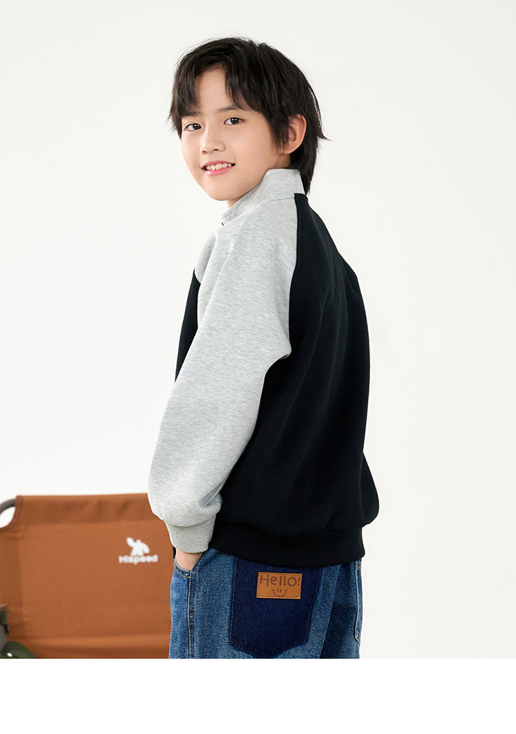 【10A抗菌】棉花堂春款撞色插肩针织立领童装外套- FD61053