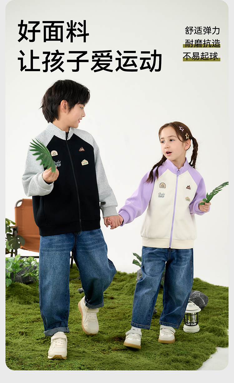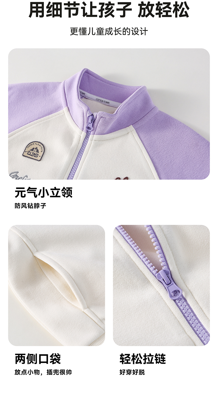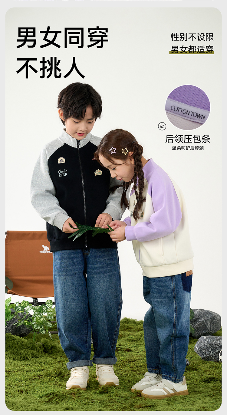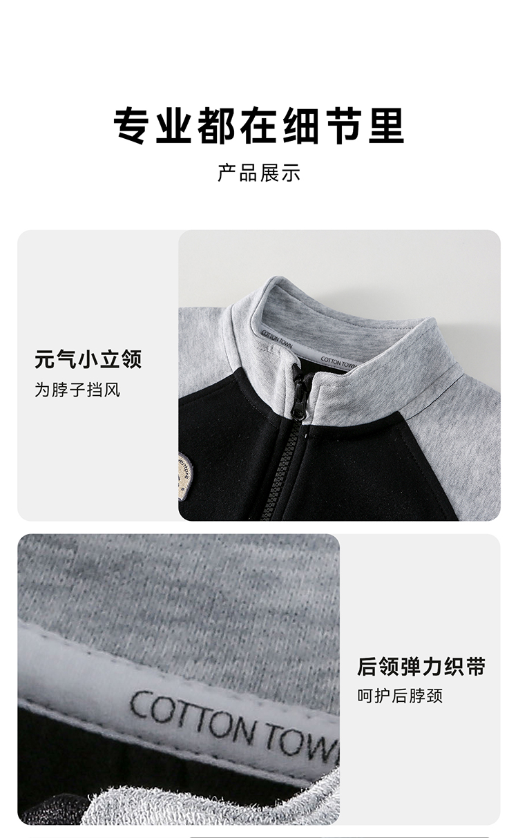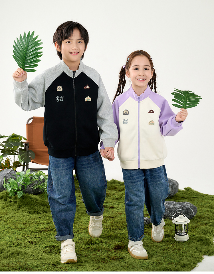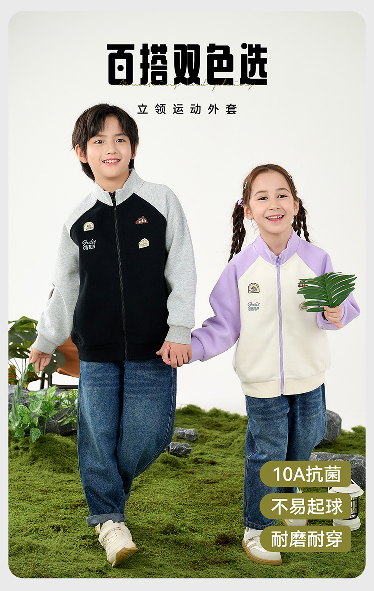 【10A抗菌】棉花堂春款撞色插肩针织立领童装外套- FD61053