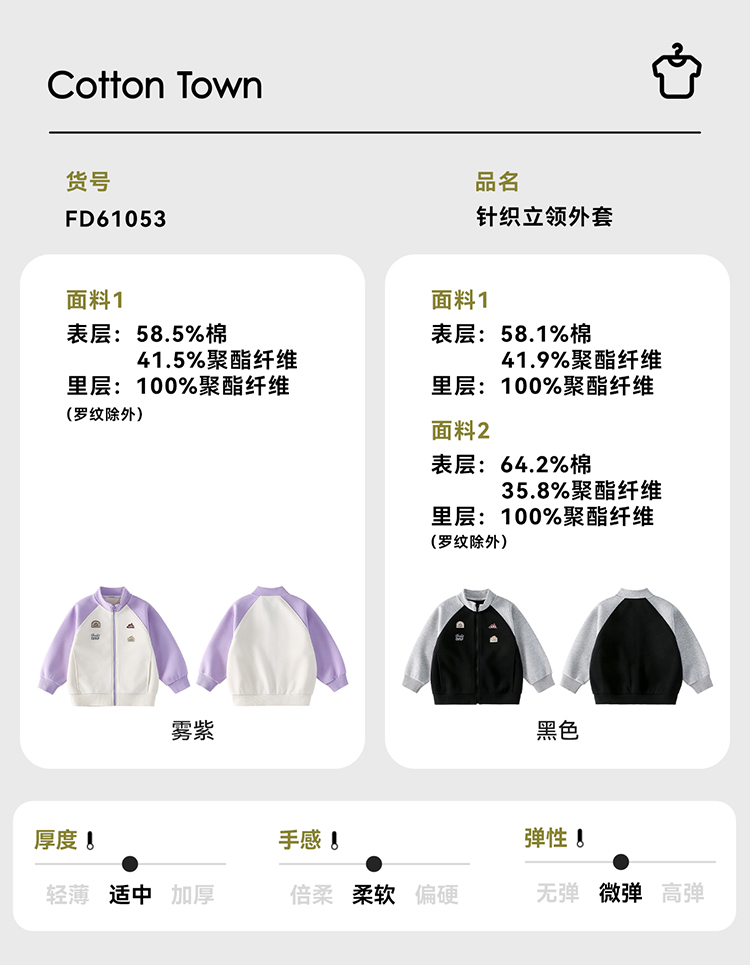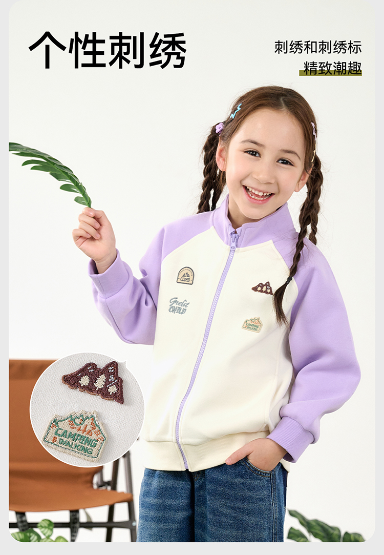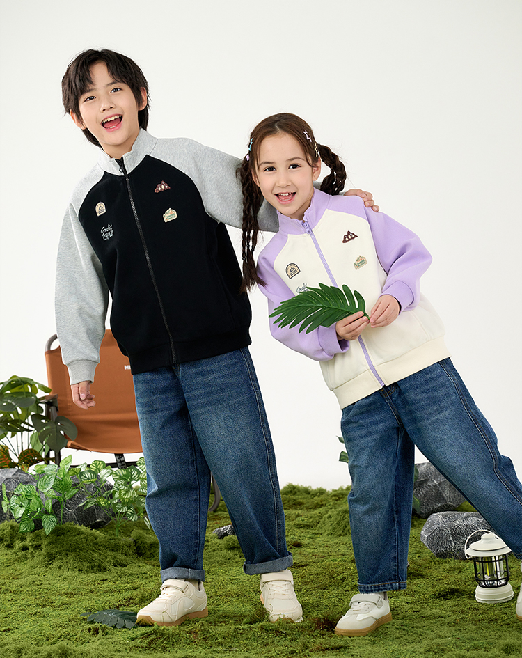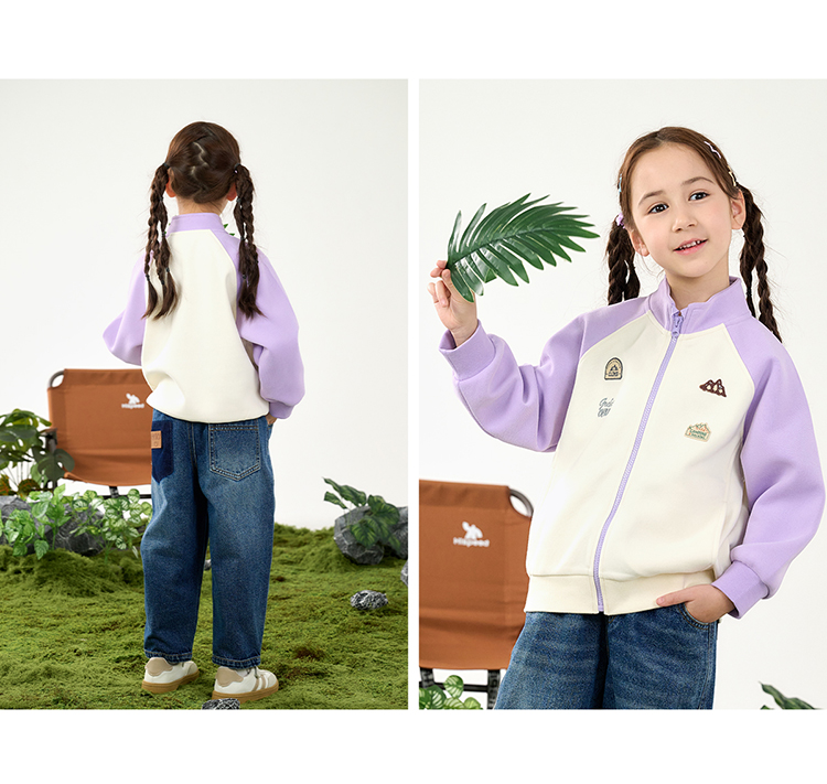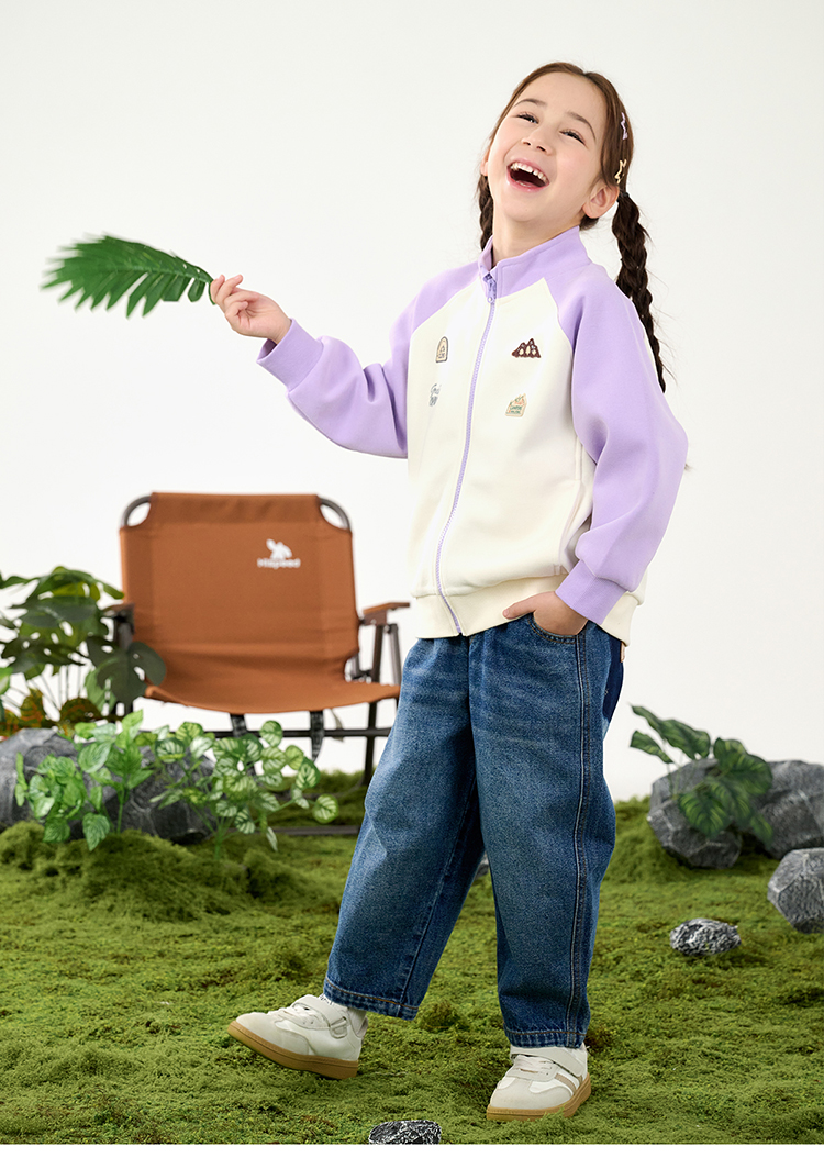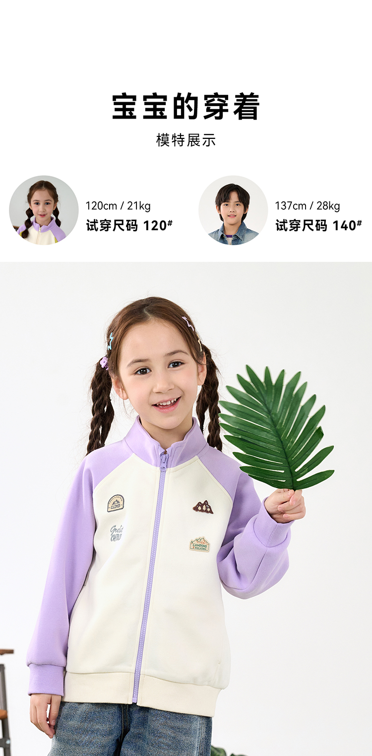 【10A抗菌】棉花堂春款撞色插肩针织立领童装外套- FD61053