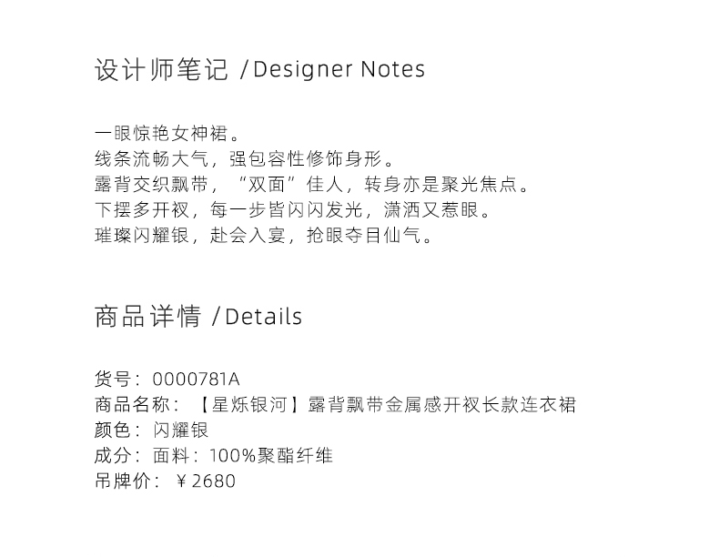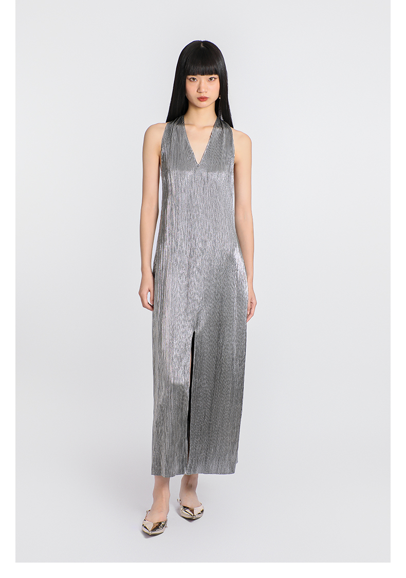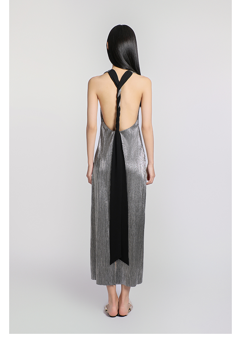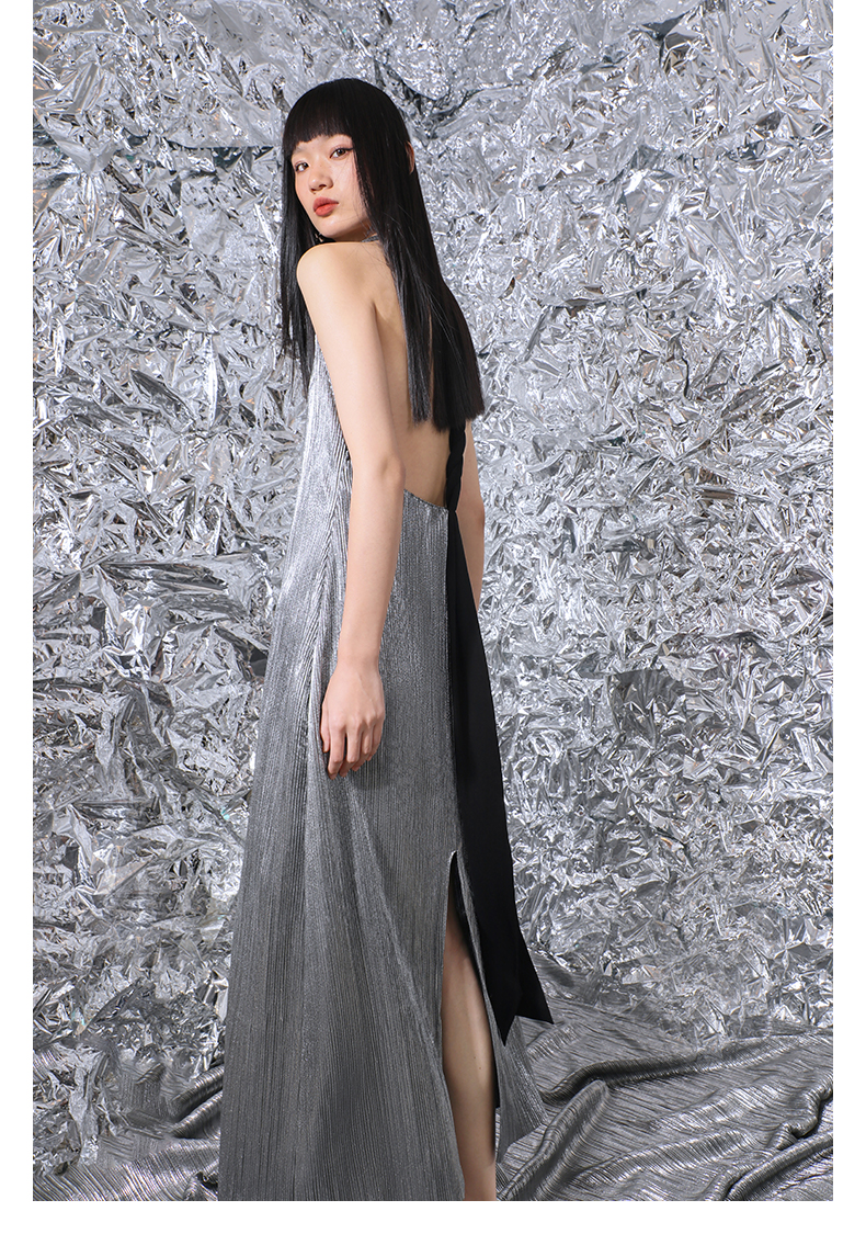 【星烁银河】露背交织飘带金属感开衩长款连衣裙/0000781A