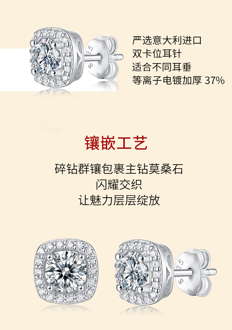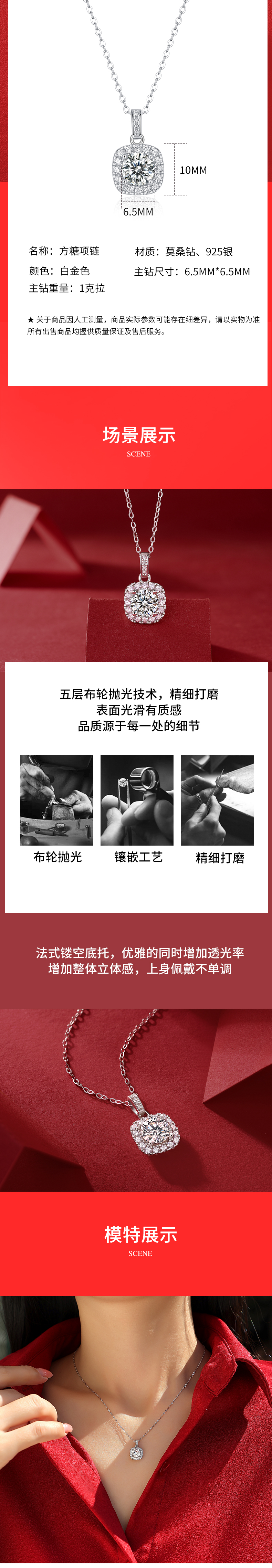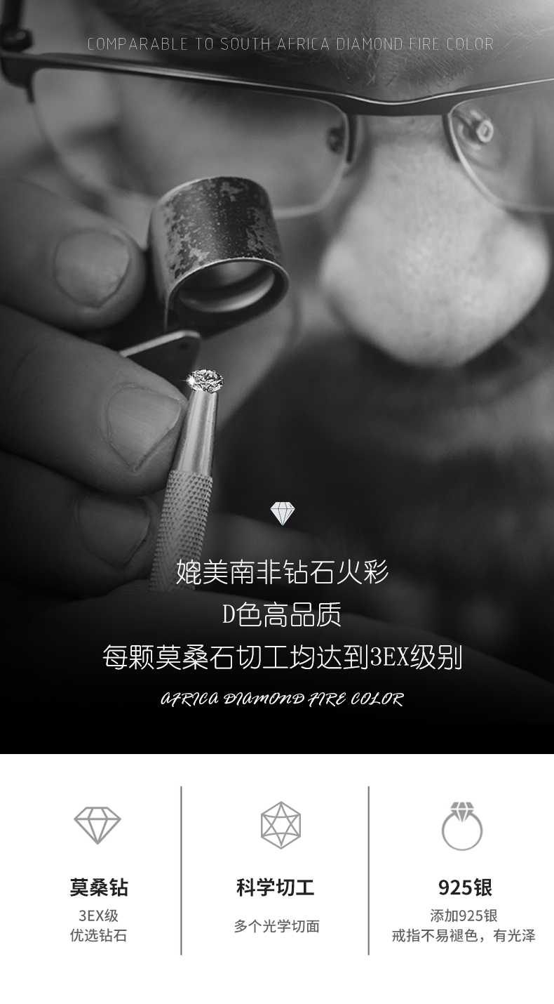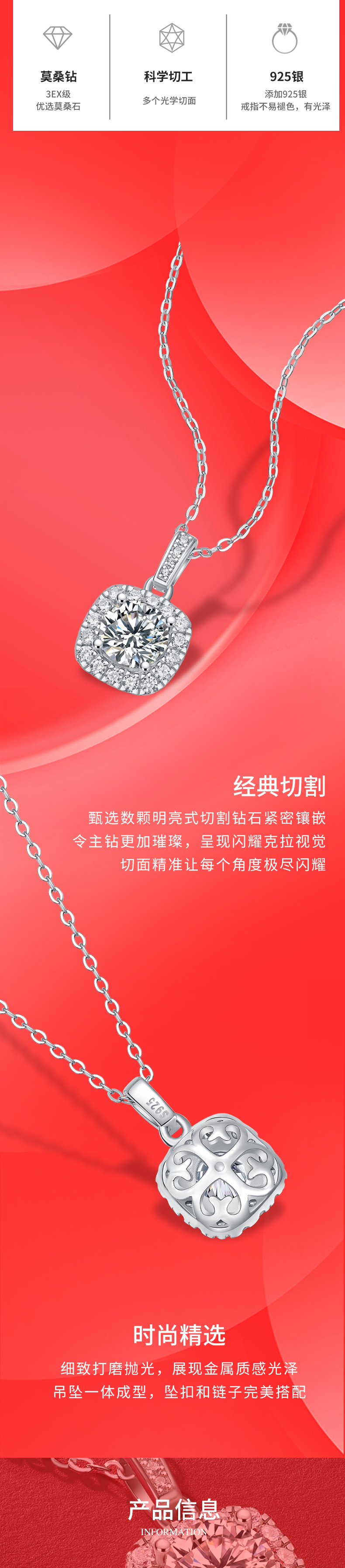 附证书💗【莫桑钻饰品专场】戒指开口可调节,项链60总长!莫桑钻折射率是2.69(钻石是2.42),所以莫桑钻的火彩比钻石还要闪亮耀眼!密镶莫桑钻,轻奢高级戒指、方糖项链~配件S925银