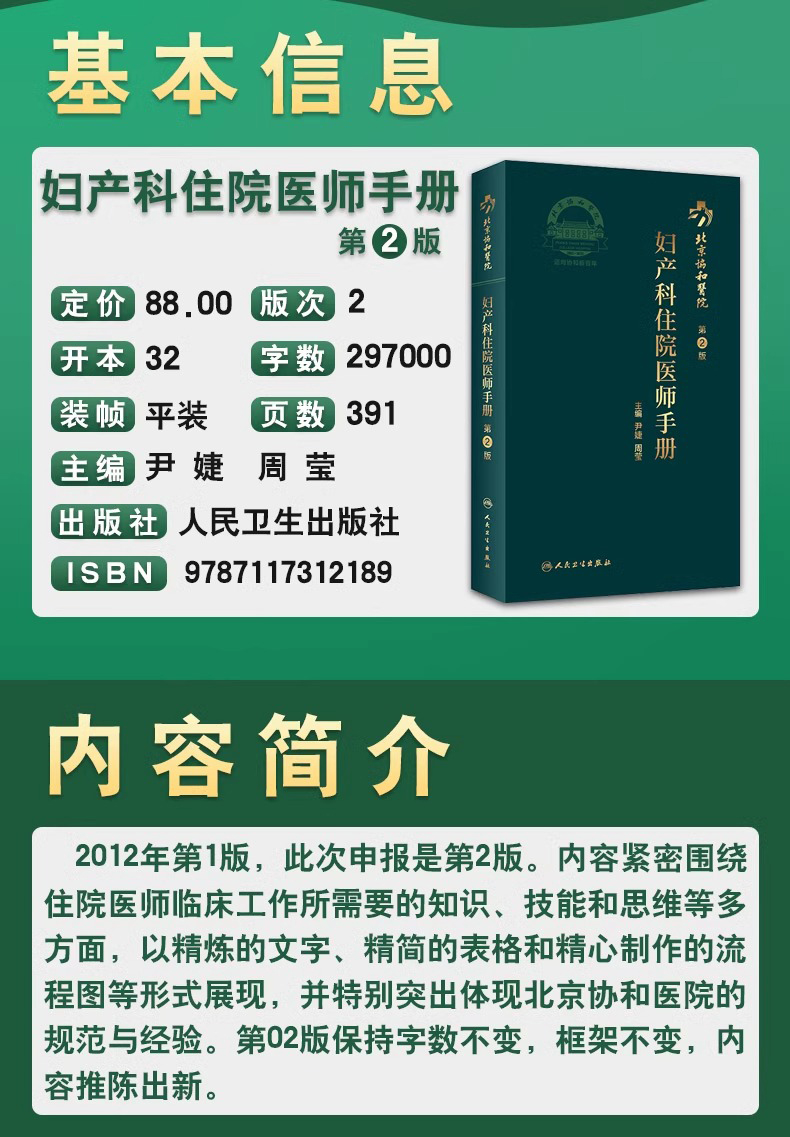 书名:【全3册】北京协和医院妇产科住院医师手册第2版+协和妇产科值班医师手册+协和妇产科查房手册