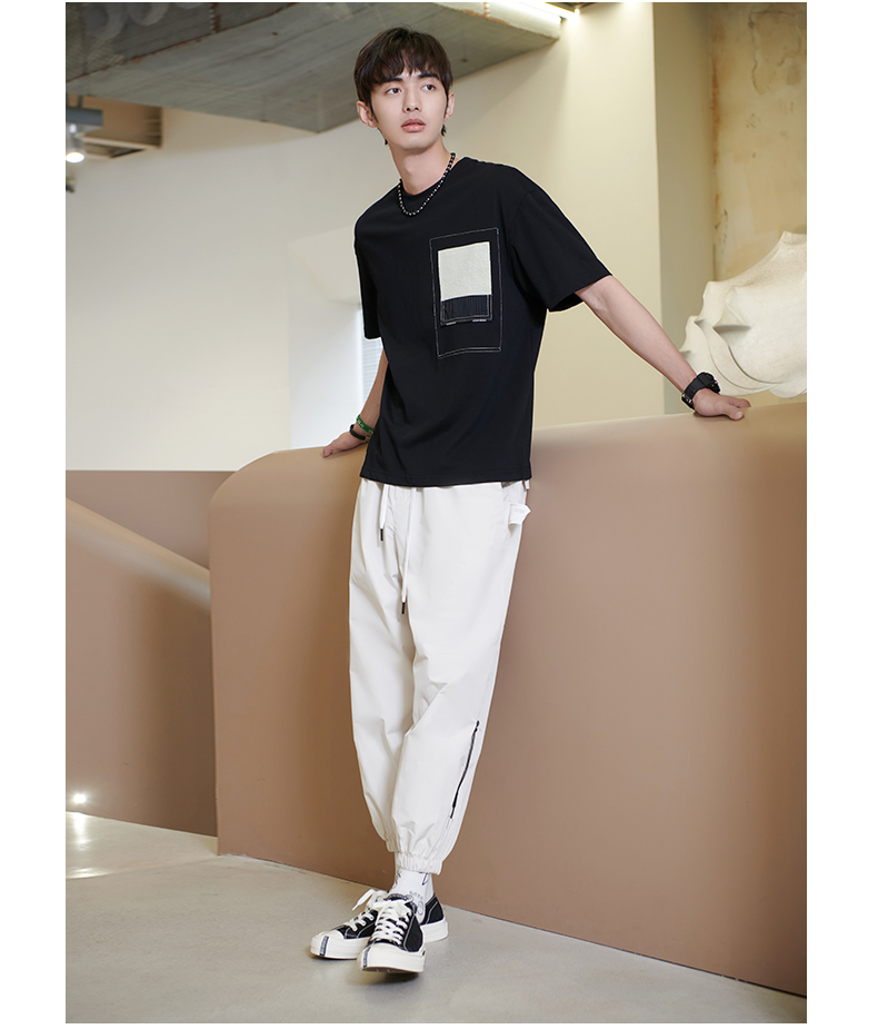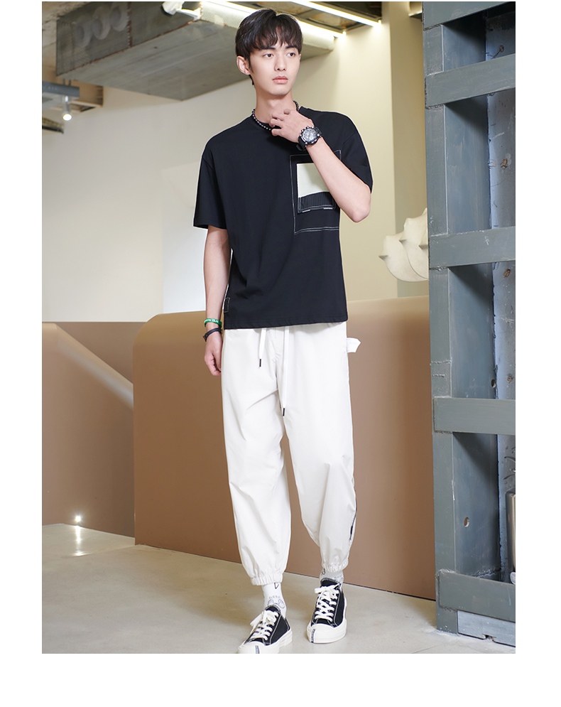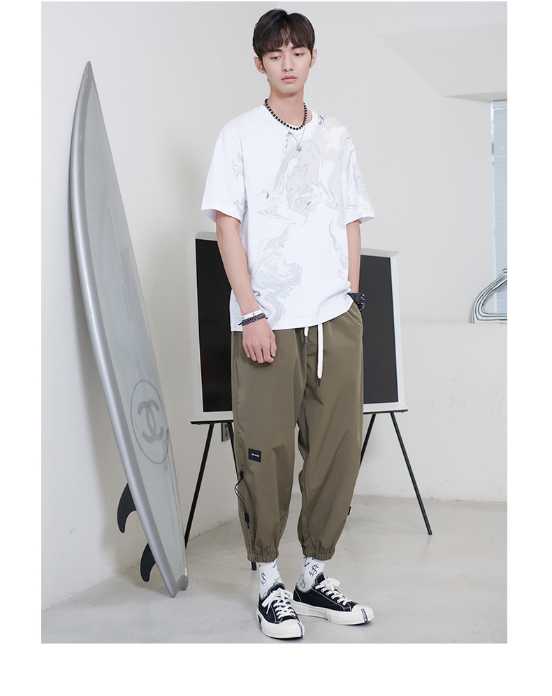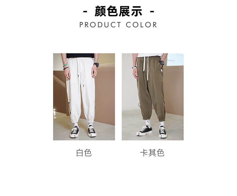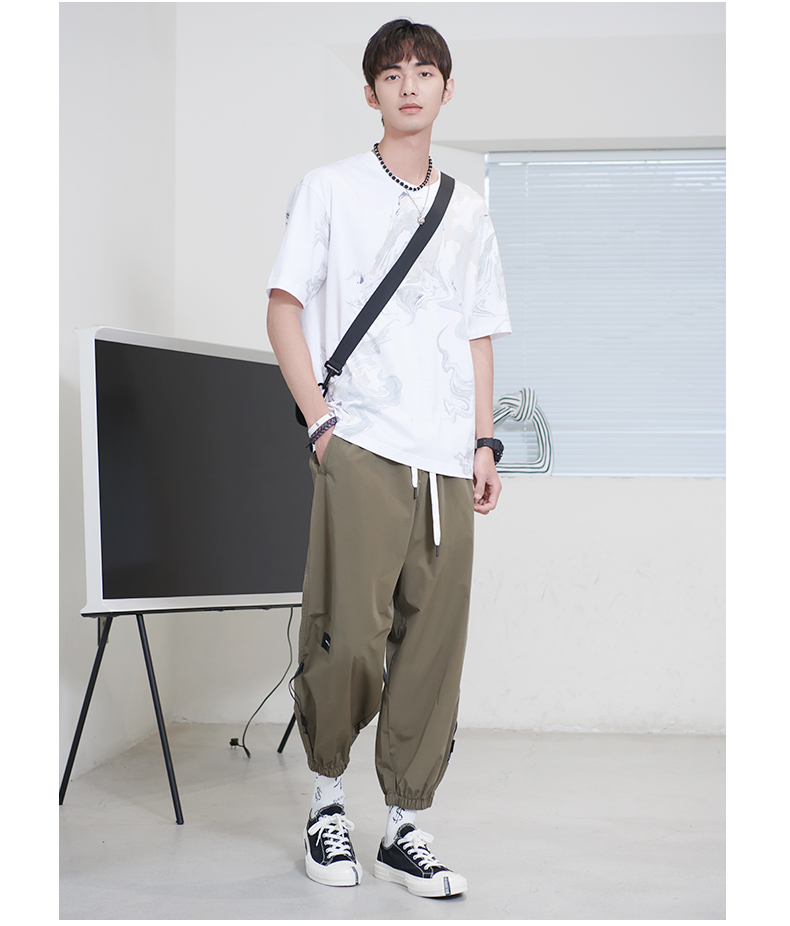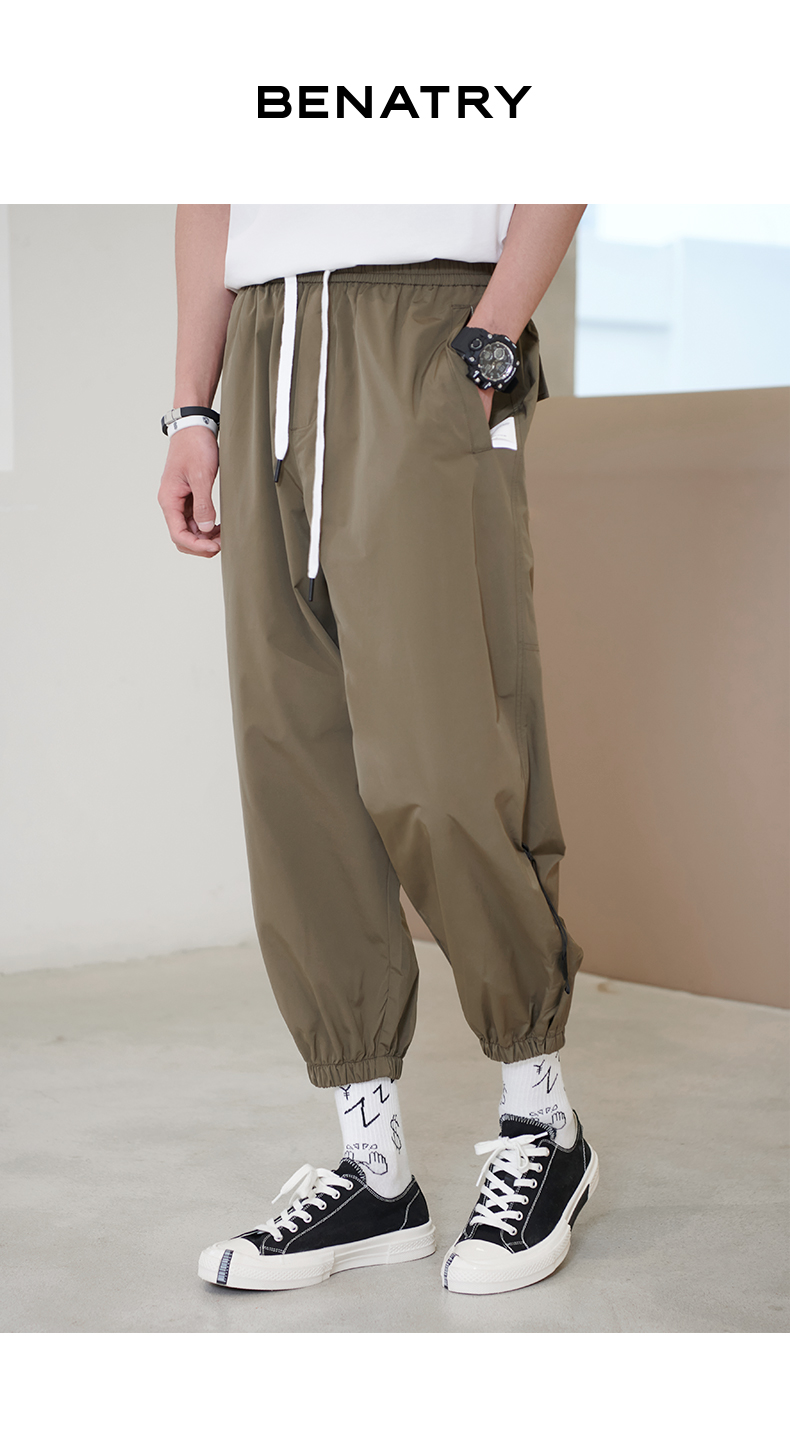 贝纳川男士夏季薄款休闲工装裤时尚潮帅气抽绳九分裤ECK235007