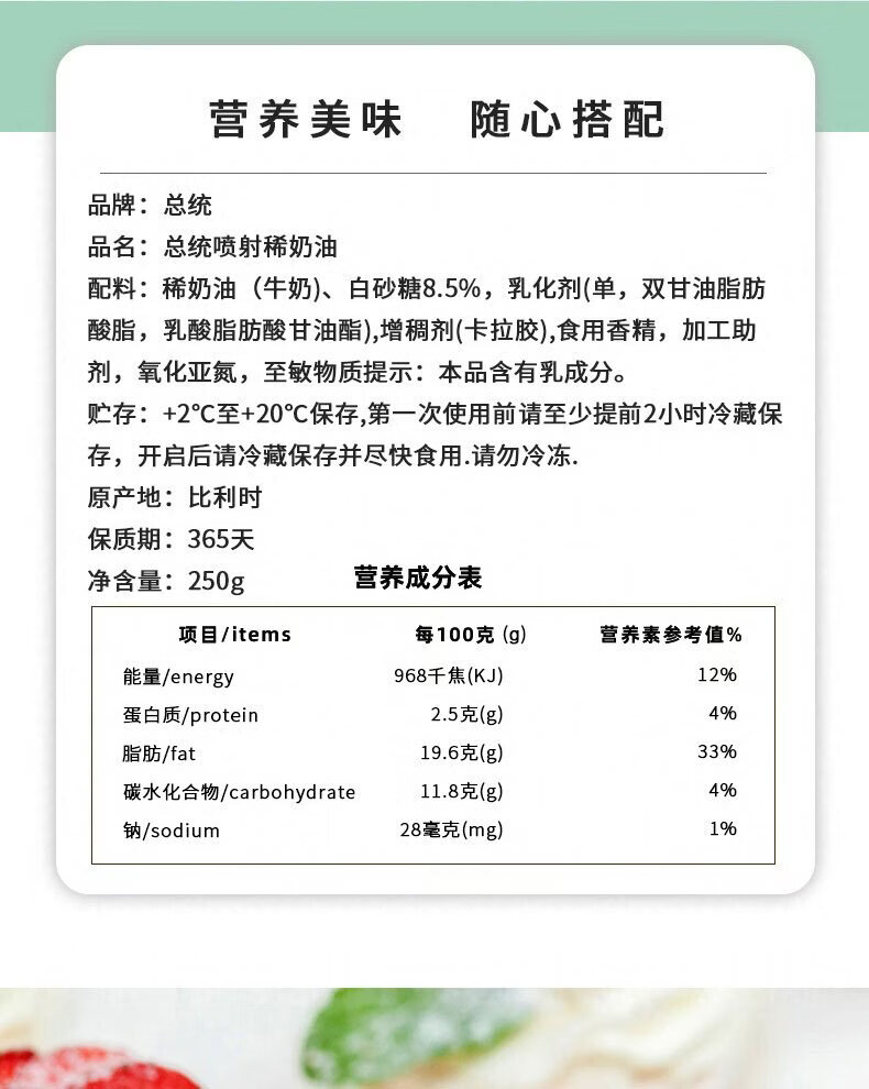 总统喷射稀奶油250g