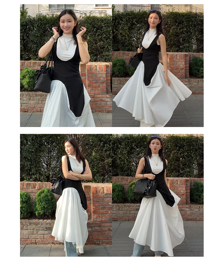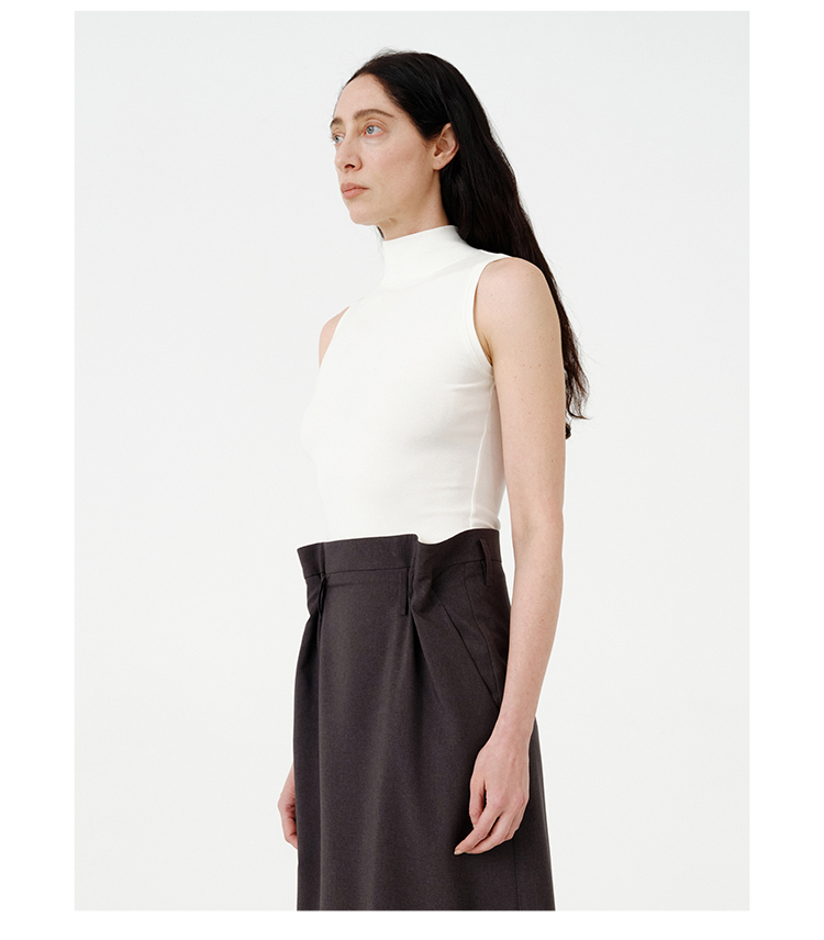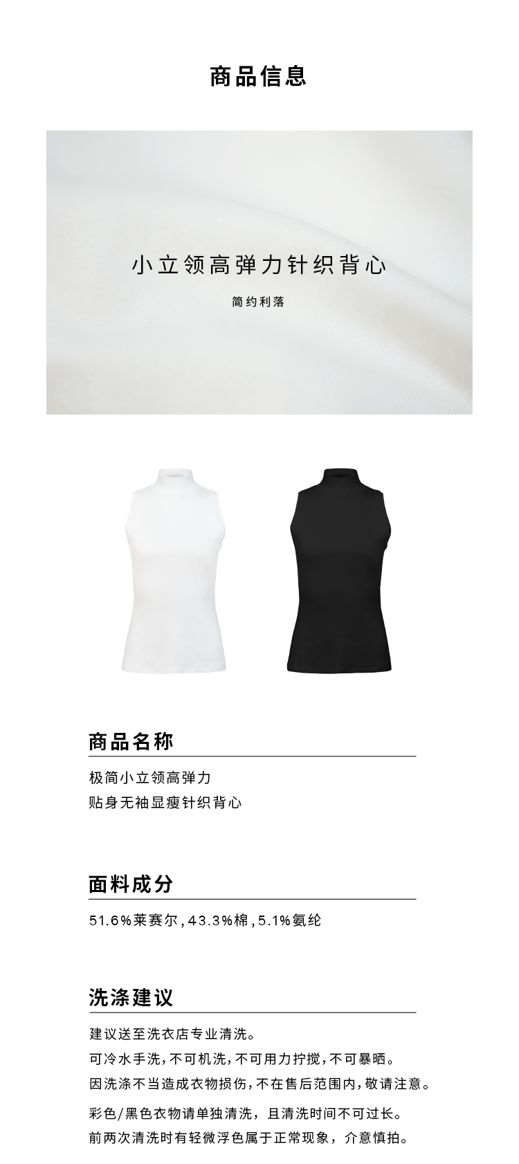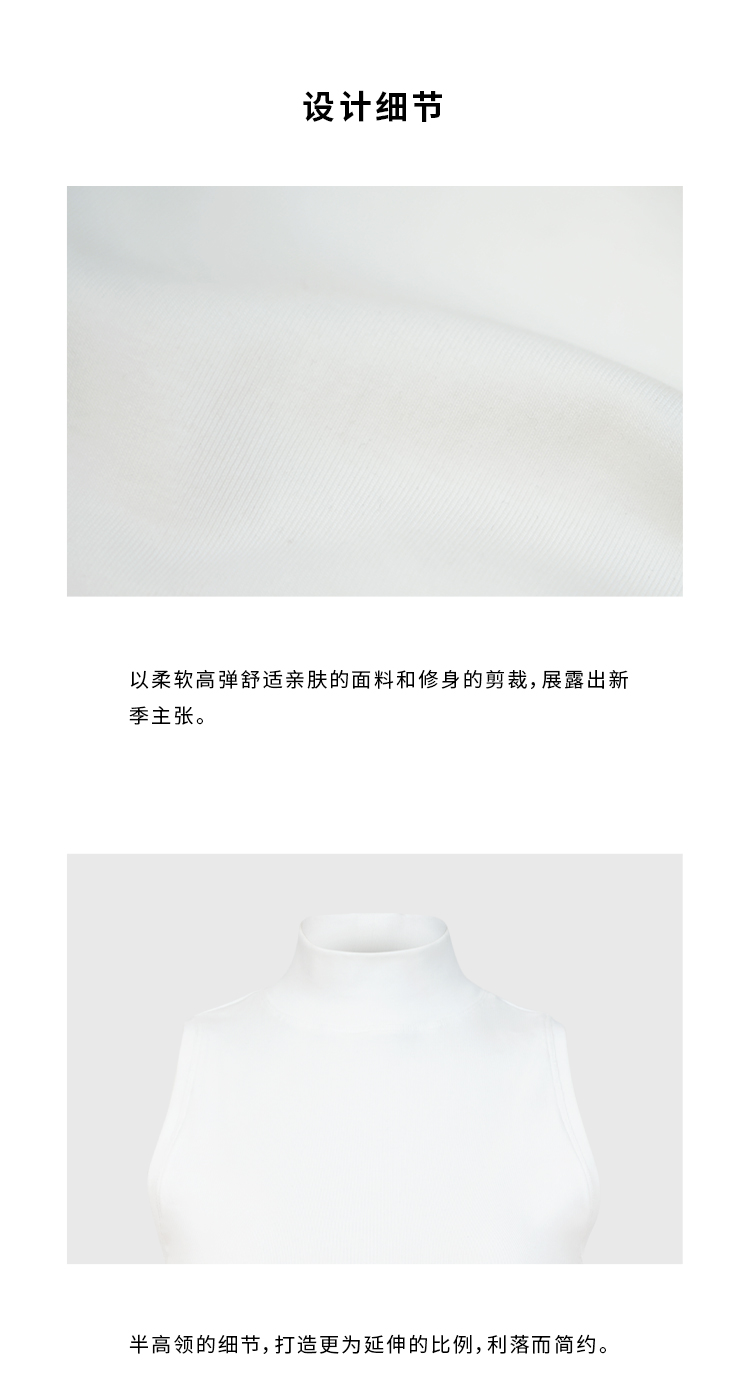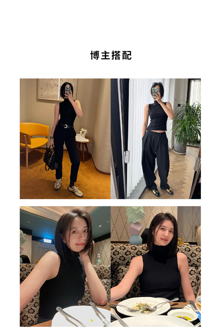 HIDEMI 极简小立领高弹力贴身无袖显瘦针织背心 黑色/白色