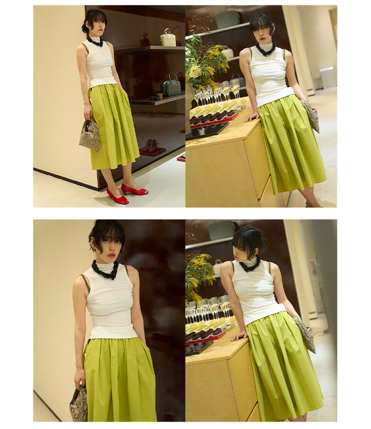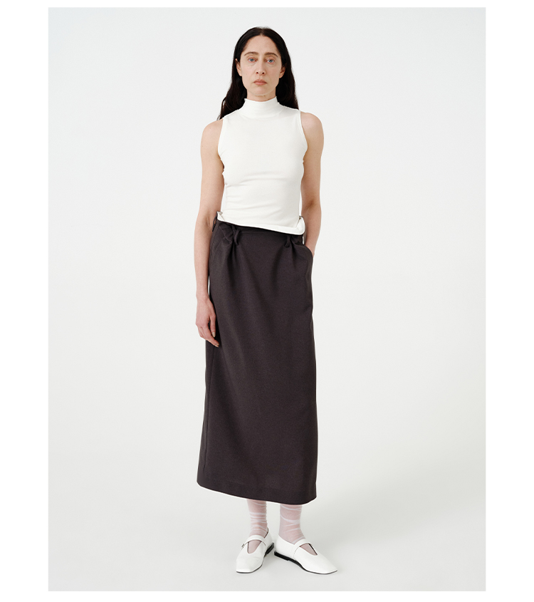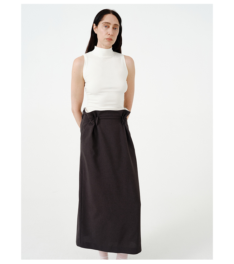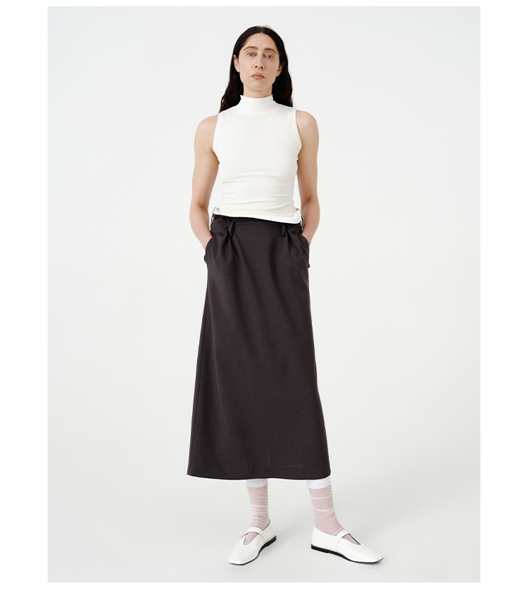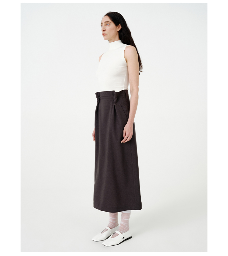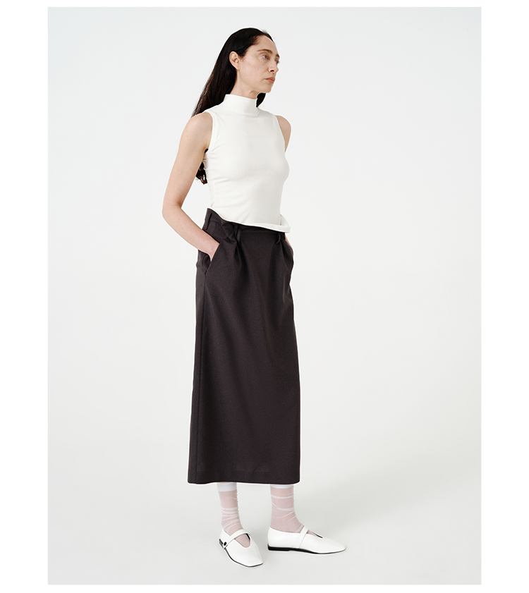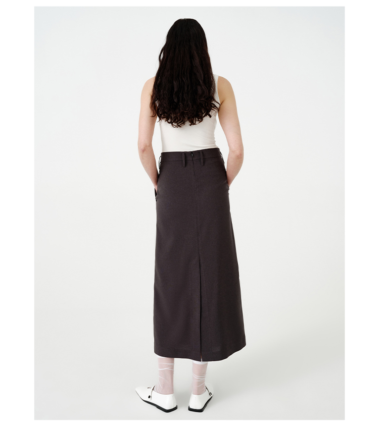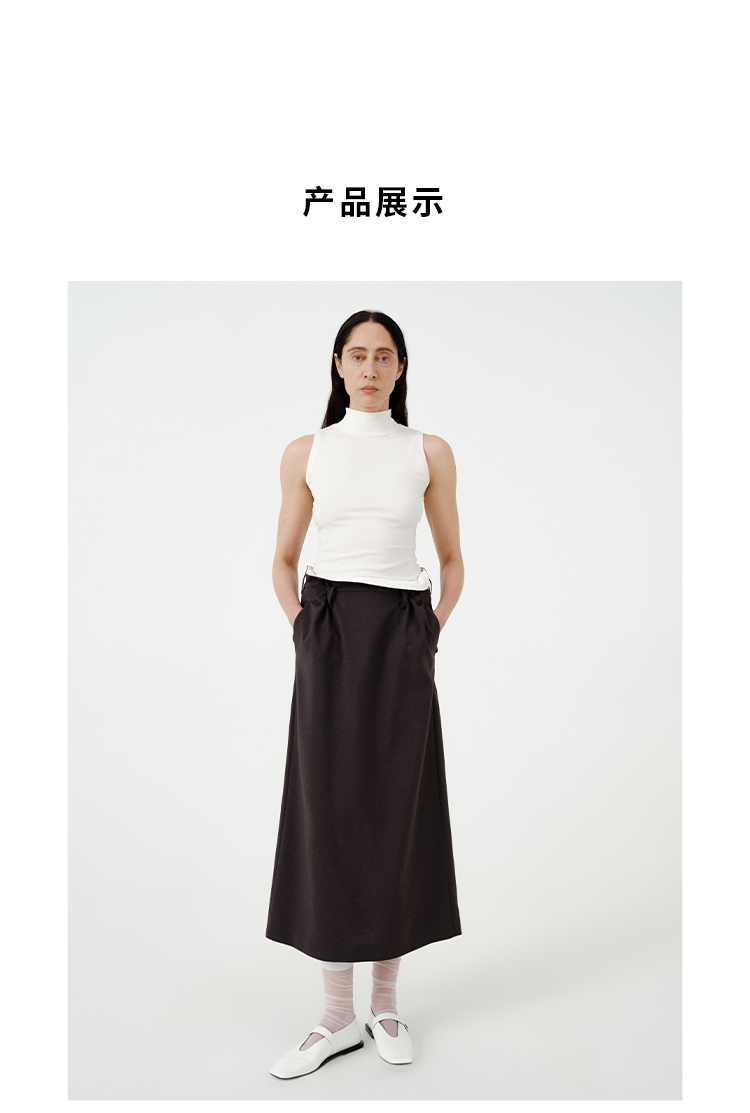 HIDEMI黑色简约大口袋设计感半身A字长裙