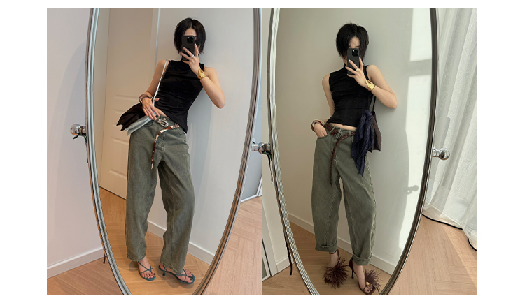 HIDEMI 到店必入垂坠感柔顺舒适透气松紧带宽松休闲空气感长裤