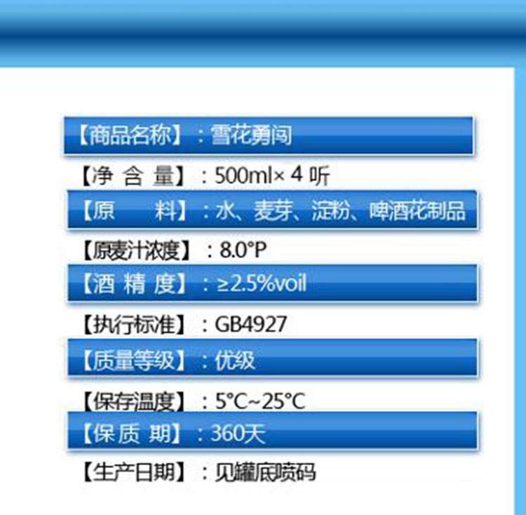 雪花啤酒 勇闯天涯啤酒 ≥2.5度 500ml*4罐 商品图1